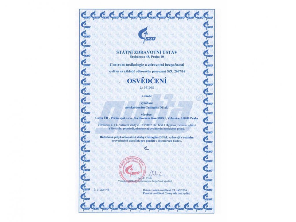 - Zdravotně nezávadný polykarbonát s certifikací SZÚ