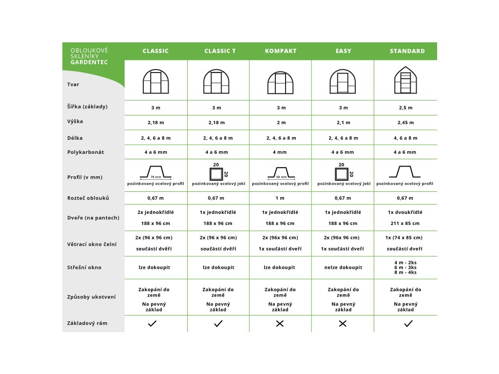 | Tloušťka profilu | 1 mm (o 30% silnější než u běžných obloukových skleníků) |