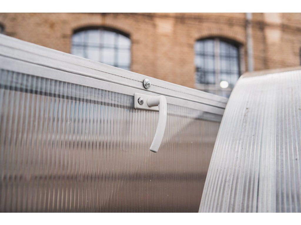 Nezbytným příslušenstvím je zcela jistě střešní větrací okno. I přesto, že skleník od výroby disponuje dvěma vyklápěcími okny v čelech, pro správné proudění vzduchu v parných dnech je nutné zajistit také střešní ventilaci pro odvod teplého vzduchu. Otevírání střešního okna lze zautomatizovat přidáním střešního automatického otvírače, který se otevírá a zavírá dle okolní teploty. Stejně tak je možné přikoupit čelní automatický otvírač, který lze umístit jak na samotné dveře, tak na vyklápěcí okénka umístěná ve dveřích.