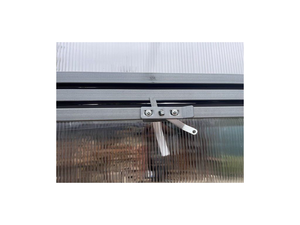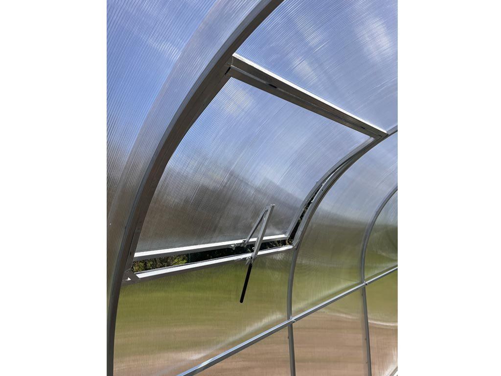 Nezbytným příslušenstvím je zcela jistě střešní větrací okno. I přesto, že skleník od výroby disponuje dvěma vyklápěcími okny v čelech, pro správné proudění vzduchu v parných dnech je nutné zajistit také střešní ventilaci pro odvod teplého vzduchu. Otevírání střešního okna lze zautomatizovat přidáním střešního automatického otvírače, který se otevírá a zavírá dle okolní teploty. Stejně tak je možné přikoupit čelní automatický otvírač, který lze umístit jak na samotné dveře, tak na vyklápěcí okénka umístěná ve dveřích.