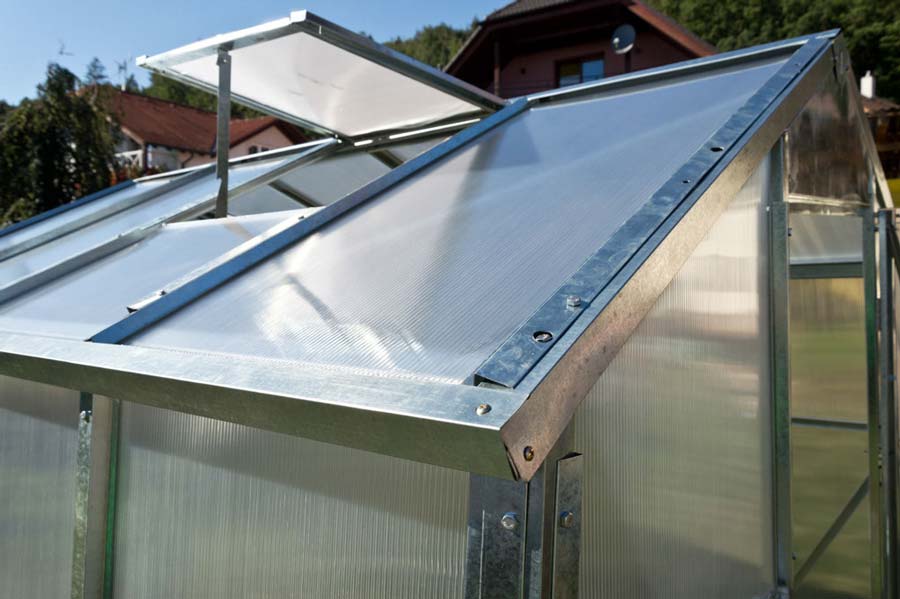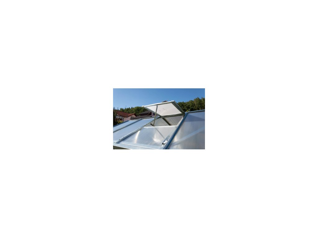 I přesto, že skleník od výroby disponuje vyklápěcím oknem, pro správné proudění vzduchu v parných dnech je nutné zajistit také střešní ventilaci pro odvod teplého vzduchu. Otevírání střešního okna lze zautomatizovat přidáním střešního automatického otvírače, který se otevírá a zavírá dle okolní teploty.