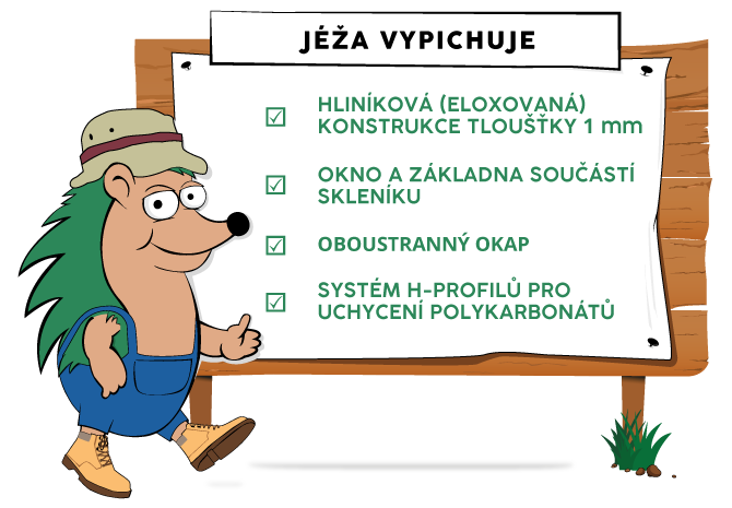 | Záruka | 15 let na vybrané vlastnosti hliníkové konstrukce; 10 let na nerozbitnost polykarbonátu krupobitím |