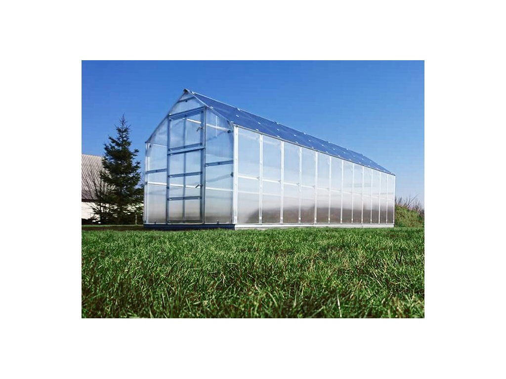 Zasklení skleníku je tvořeno čirým dutinkovým (komůrkovým) polykarbonátem o tloušťce 6 mm s UV ochranou, který má zvýšené tepelně izolační vlastnosti, oproti běžně prodávaným skleníkům. Polykarbonát splňuje veškeré podmínky zdravotní nezávadnosti. Polykarbonátové desky jsou již předem naformátovány.
