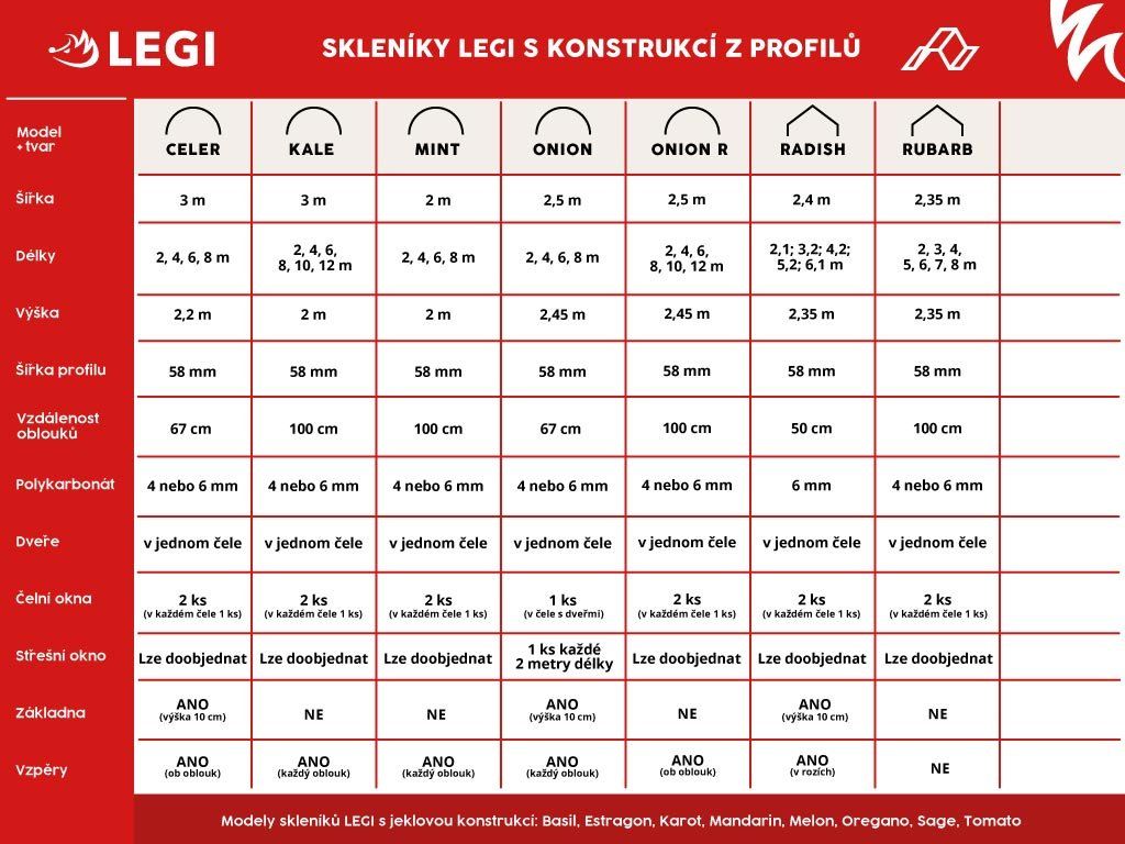 - Nabídku skleníků LEGI s jeklovou pozinkovanou konstrukcí, včetně oblíbených skleníků OREGANO, ESTRAGON, TOMATO a dalších