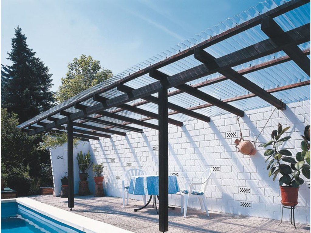 Trapézové desky Guttagliss Makro ST jsou vyrobeny z polykarbonátu, což je mimořádně pružný, pevný a nárazuvzdorný materiál. Jsou velmi odolné proti mechanickému poškození, povětrnostním vlivům a odolné proti krupobití. Desky snáší vysoké teploty až do 115°C a jsou opatřeny oboustranným UV filtrem. Polykarbonátové desky Guttagliss Makro ST jsou vhodné pro prosvětlení stěn i střech obytných a průmyslových staveb, zastřešení pergoly, garážového stání, zastřešení ochranných přístřešků, ale i zastřešení bazénů. Desky časem nemění svou strukturu ani průhlednost (nežloutnou). Alternativou polykarbonatové trapézové desky pro zastřešení pergoly je Guttagliss Makro, která se liší hladkou strukturou desky.