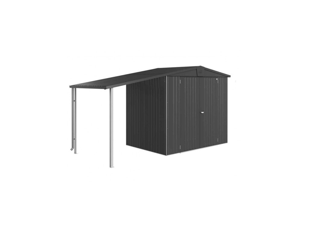 Postranní střecha je praktickou součástí dodatečné výbavy zahradního domku Europa. Slouží k vytvoření otevřeného prostoru zleva, zprava nebo dokonce oboustranně, který lze využít jako ideální místo k odpočinku s rodinou a přáteli nebo jako přístřešek pro dřevo, zahradní techniku, motorku či automobil.