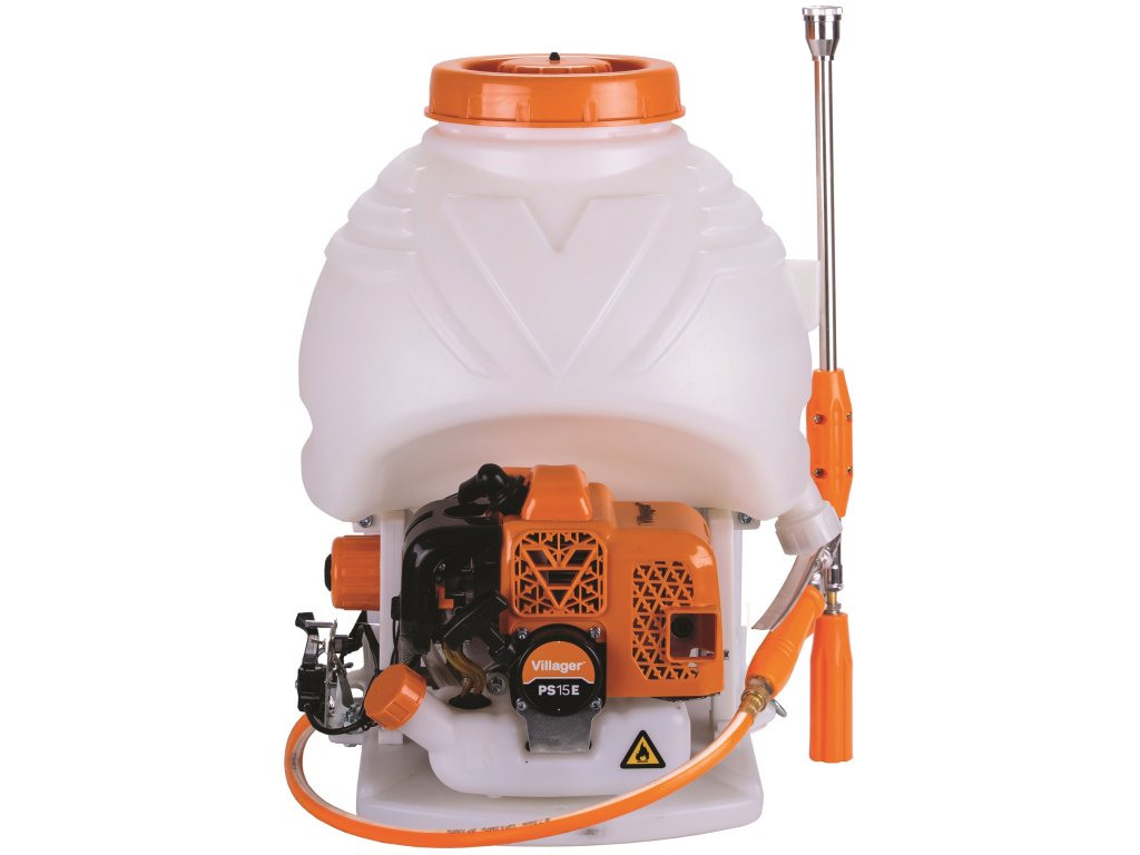 Benzínový postřikovač značky VILLAGER PS 15 E je výkonný, flexibilní postřikovač určený pro použití k ošetření sadů, lesních porostů, nebo při pěstování zeleniny a ovoce na velkých plochách. Je vhodný pro stříkání látek, jako jsou: insekticidy, fungicidy a činidla pro ošetření osiva. Je to skvělý pomocník při ochraně výsadby před chorobami a škůdci. Konstrukce postřikovače je jednoduchá, odolná, kompaktní a lehká na údržbu. Zádový postřikovač PS 15 E má vysoký tlak, velký průtok a výbornou účinnost, takže ochranný efekt je viditelný.