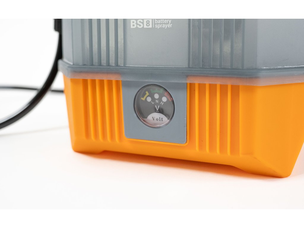 Tlakový postřikovač pracuje s maximálním tlakem 4 bary. Kontrolu hladiny 8litrové nádrže vidíte na boční měrce. Kuželová