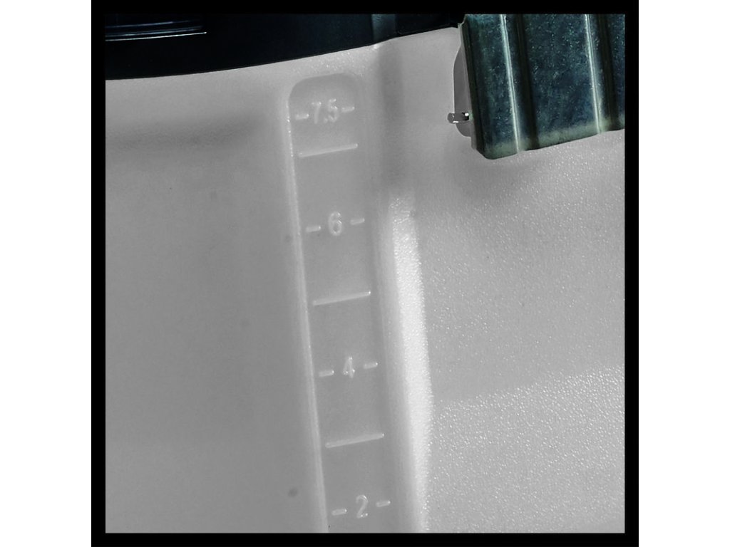 - Průhledná nádrž se stupnicí pro snadnou kontrolu stavu