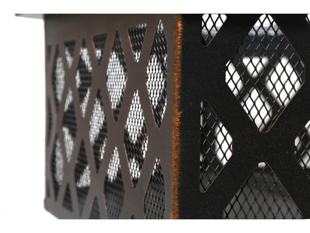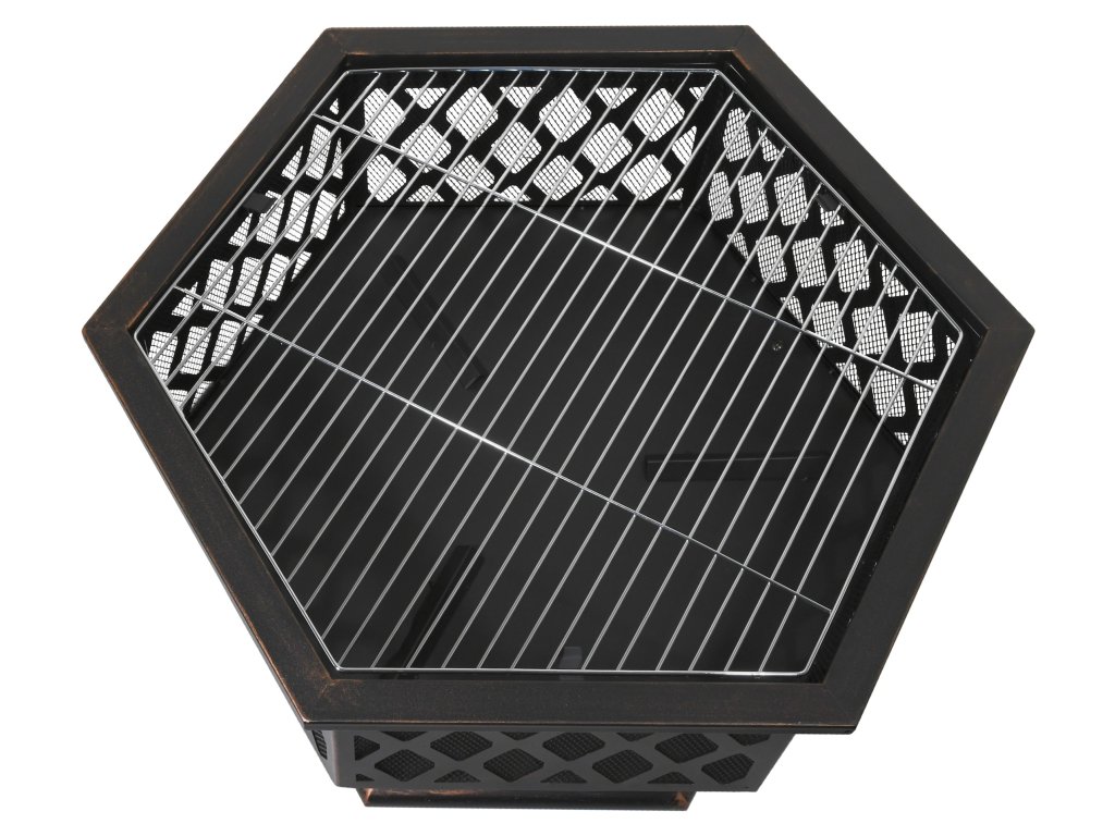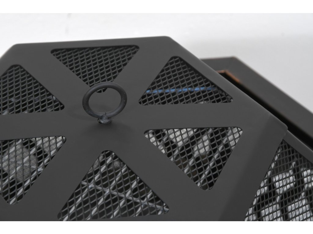 Konstrukce ohniště je vyrobena z kvalitní oceli s vysokoteplotním černým/měděným nátěrem s patinou. Pro grilování je ohniště opatřeno ocelovým roštem o rozměrech 61x53 cm. Ohniště je velmi stabilní a jeho výjimečný vzhled zkrášlí každou zahradu. Ohniště je zkrátka dekorativním prvkem v zahradě, na dvoře či terase, nezáleží na tom, zda s plamenem nebo bez.