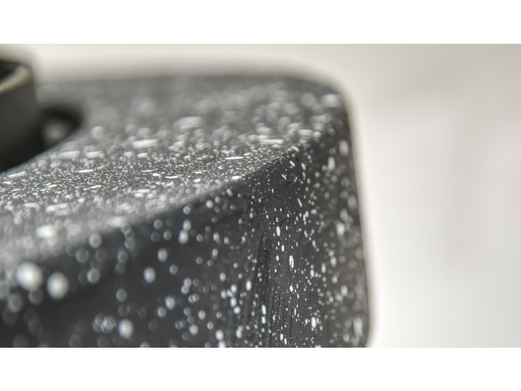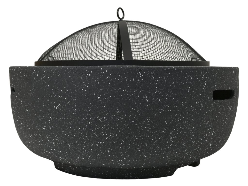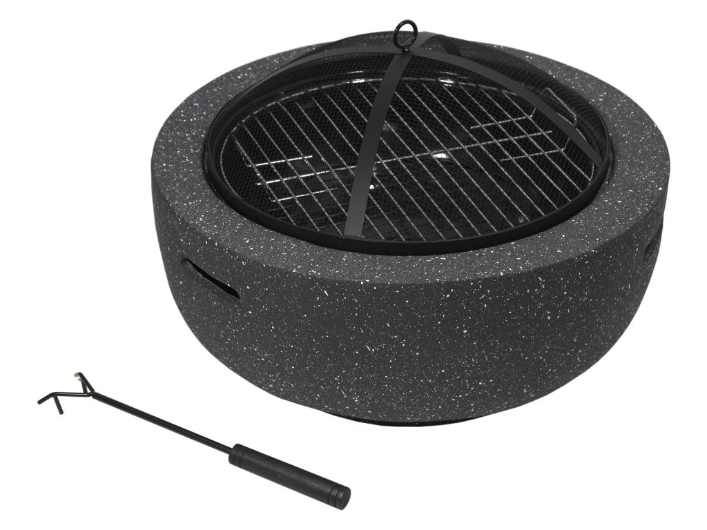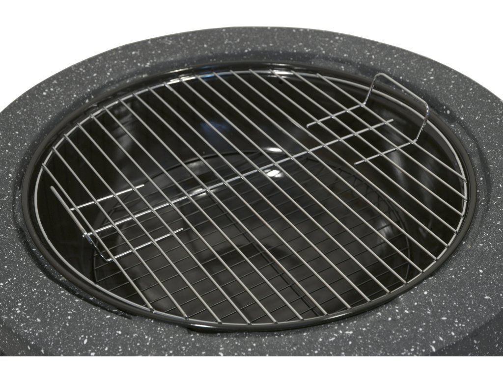 Vnitřní část ohniště je vyrobena z kvalitní oceli s vysokoteplotním černým nátěrem uložené v pevném a teplotě odolném těle z páleného kamene z Oxidu Hořečnatého. Pro grilování je ohniště opatřeno ocelovým roštem průměru 44 cm.