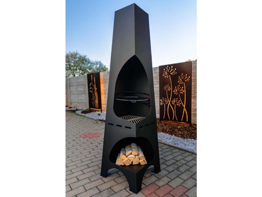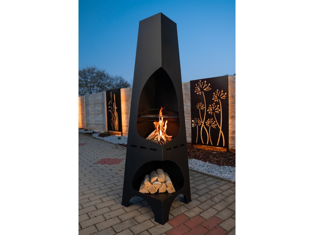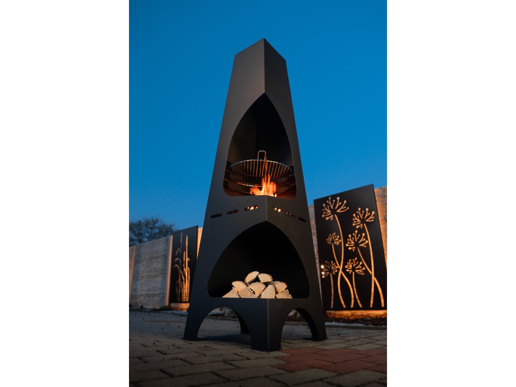 Ohniště vyrobené ze silnostěnné černé oceli poslouží pro příjemné posezení u ohně, jako zdroj tepla, stejně jako podmanivý způsob osvětlení může být umístěno na libovolném místě na zahradě nebo terase. Ohniště je vyrobeno ze silnostěnného plechu o síle 3 mm a 4 mm.