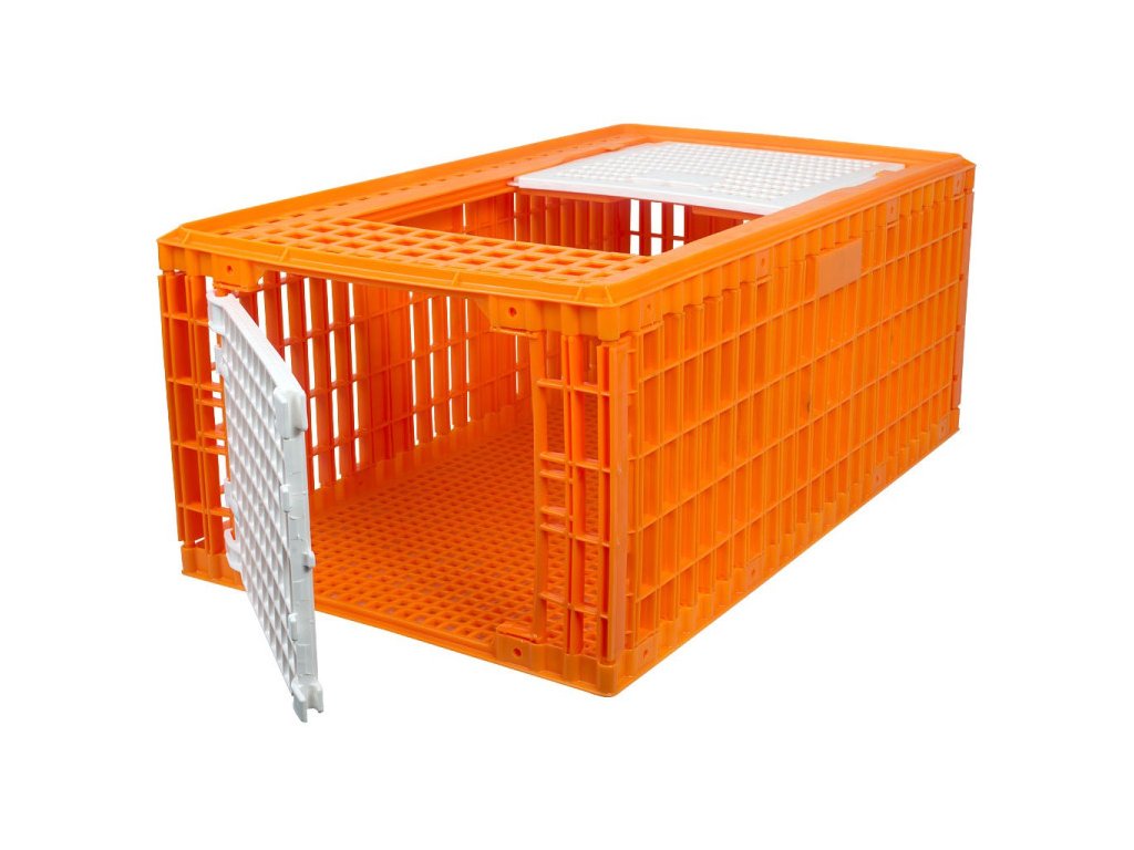 Extra vysoký a velký model, díky kterému je tento přepravní box ideální pro přepravu například krůt nebo hus. Děrované dno zajišťující lepší ventilaci při přepravě. Posuvné dveře se nacházejí v horní části. Dveře na pantech jsou po boku.