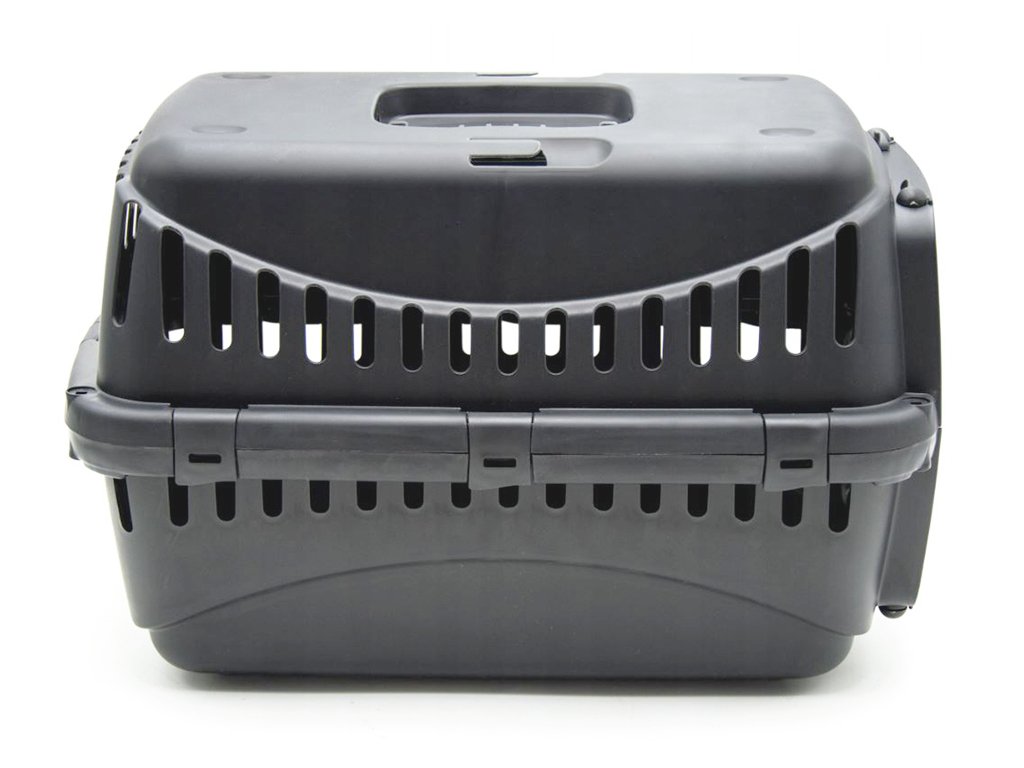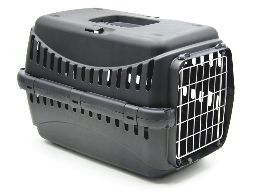 Pro psy a kočky do 6kg, víko a vana se spojují klipsy, kovová přední dvířka, rukojeť pro snadné přenášení přepravky, dva úchyty pro bezpečnostní pás v autě, rozměry 45x30x30cm.