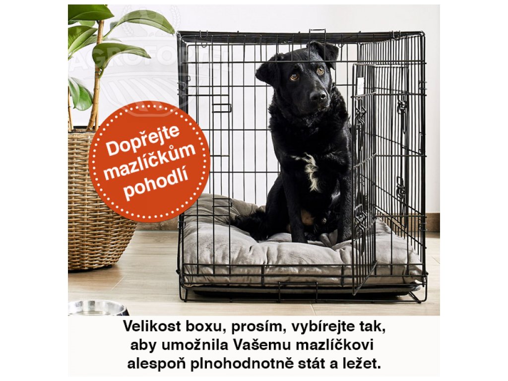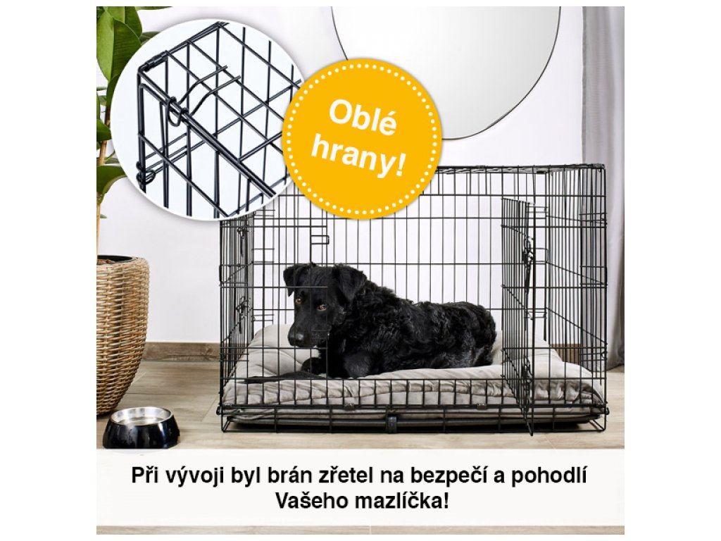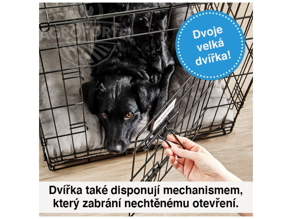Velké přední dveře a boční otevírání umožňují vašemu snadný přístup. Každá dvířka mají dvojitý zámek, který brání zvířeti v útěku. Váš pes je tak v bezpečí a na jednom místě.