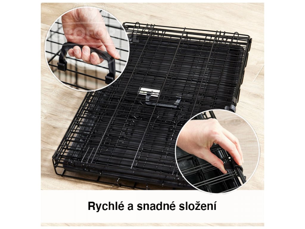 Lehký box pro psy s hmotností 3.11 kg se velmi snadno staví a rozkládá díky skládací a kvalitní železné konstrukci. Další zacvakávací uzávěry zabraňují rozložení boxu při přenášení. Pro úsporu místa lze box snadno složit.