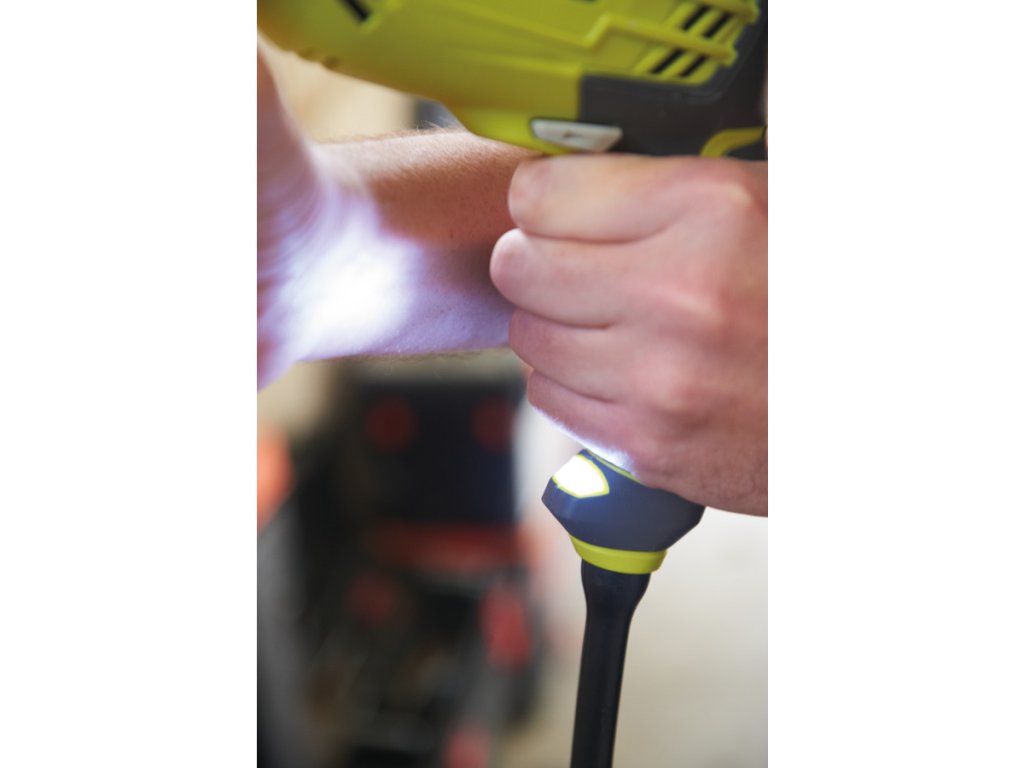 Při využití příklepu se vám jistě bude hodit přídavná rukojeť otočná až o 360° a vysoce kvalitní jednoobjímkové sklíčidlo s aretací hřídele, které ani při vrtání s příklepem nepovolí. Součástí balení je také hloubkový doraz pro zajištění přesnosti hloubky vrtání. Integrované LED světlo zajišťuje dobré osvětlení a jasnou viditelnost při práci.