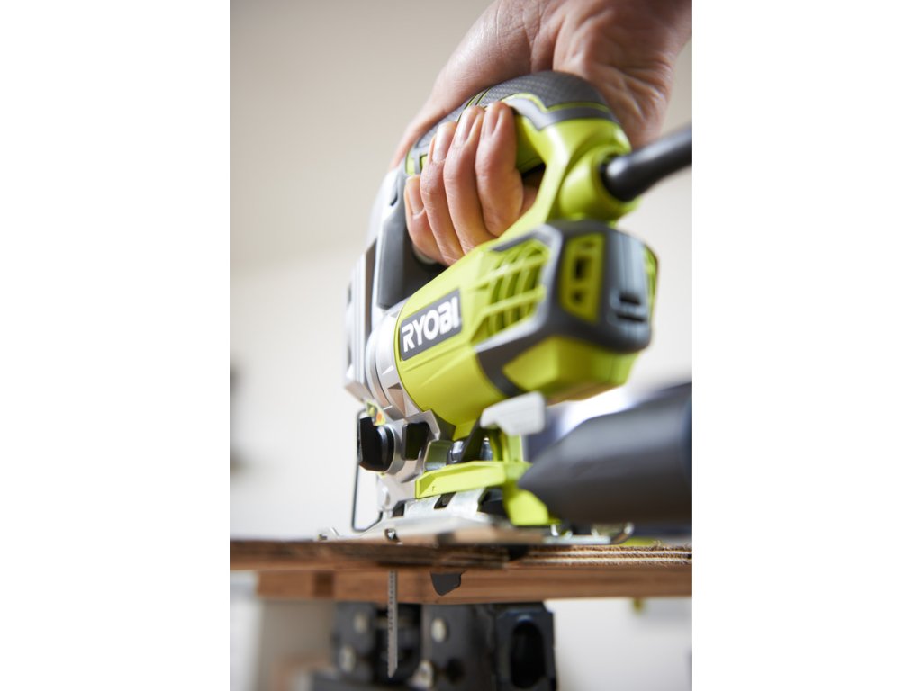 Výkonná elektrická přímočará pila RYOBI RJS1050-K, 680 W, nabízí perfektní řešení pro všechny řemeslníky a kutily, kteří hledají pomocníka při práci v dílně. Tento nástroj je ideální pro řezání složitých tvarů ze dřeva, plastu, sádrokartonu, kovu a v deskových materiálech (DTD, MDF, OSB, překližky, laťovky atd.).