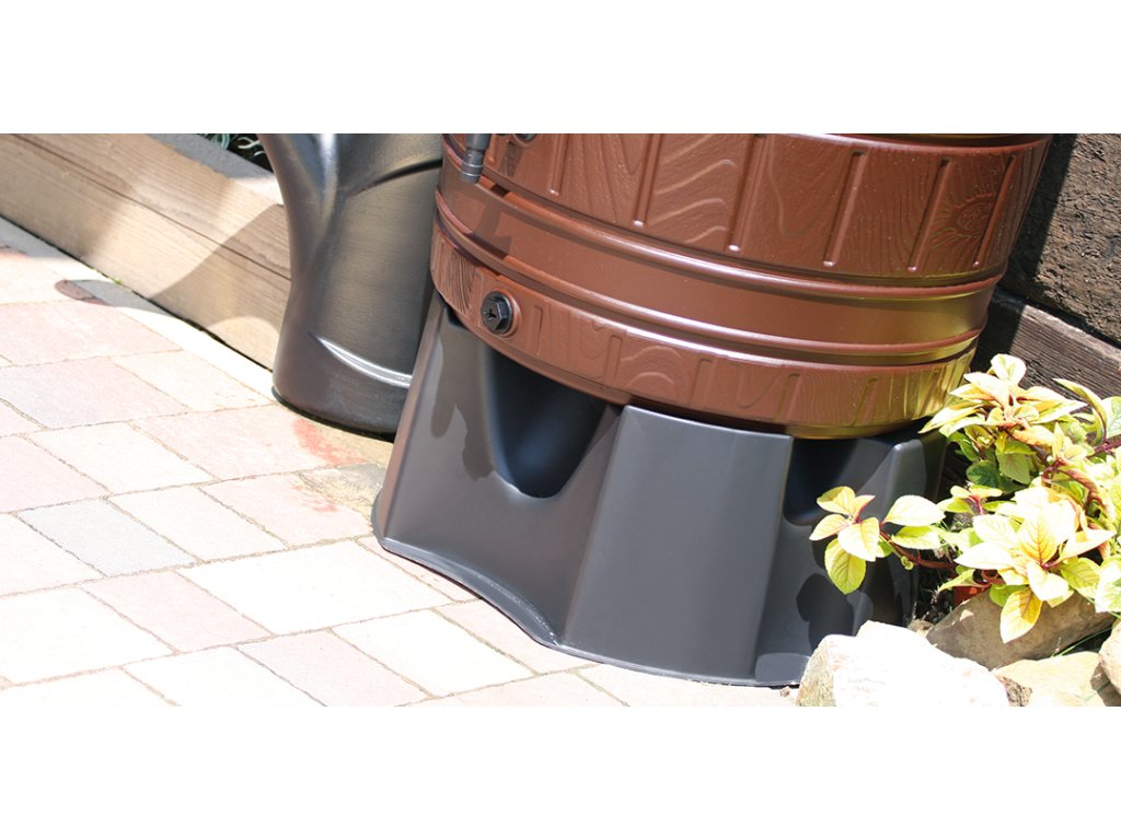 Podstavec slouží ke snadnějšímu umístění nádoby pro výpusť vody ze sudu a zajišťuje dobrou stabilitu sudu. Zároveň dojde k navýšení celkové výšky sudu, který díky tomu může být blíže u svodu vody. Zvýší se tak spád pro montáž zavlažovací hadice nebo kapkové závlahy.