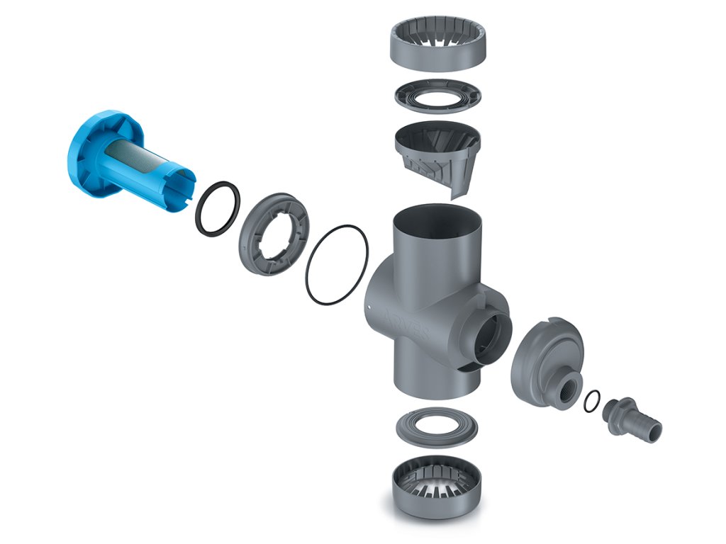 Navrženo pro jednoduché a rychlé připojení k hlavním typům okapových svodů (průměr 68–110 mm nebo čtvercové 60 × 60 mm). Ideální pro plošné zastřešení do 70 m², poskytuje spolehlivý sběr důležité dešťové vody bez kompromisů.
