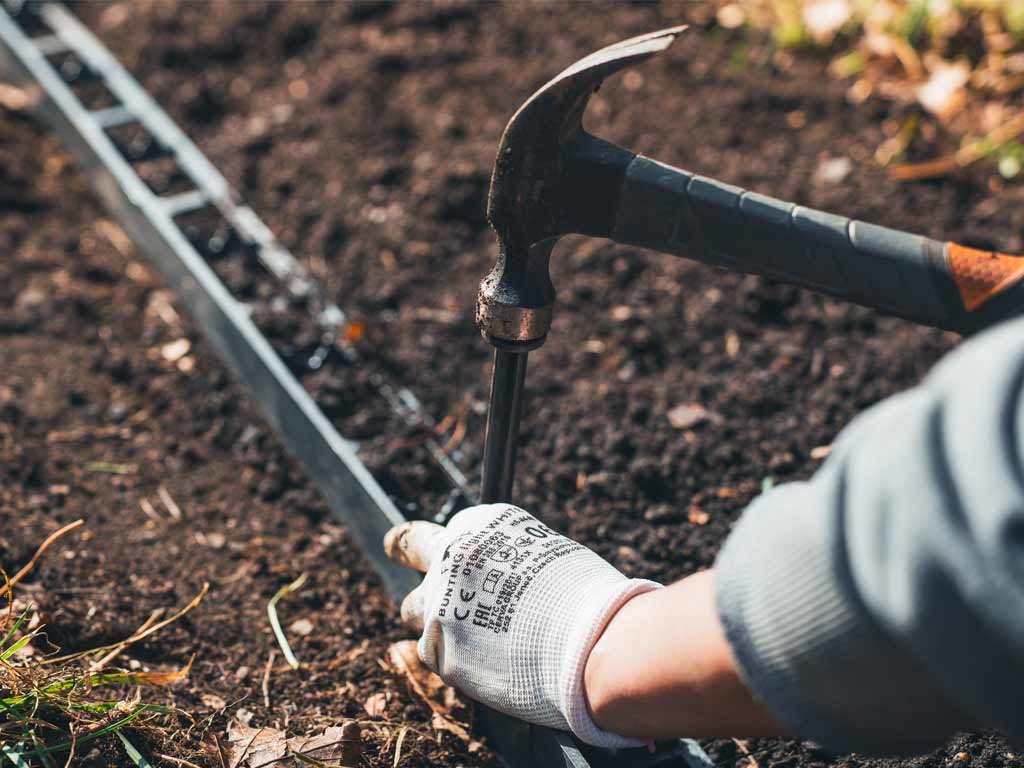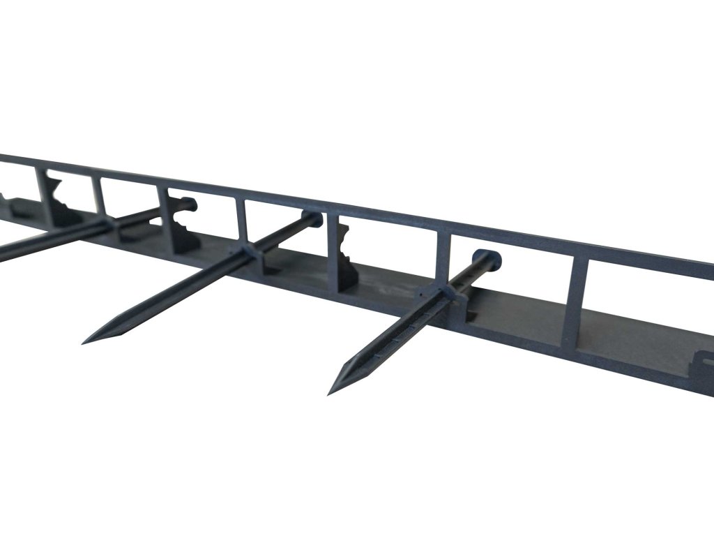 Obrubníky je nutné při pokládání postupně ukotvovat - instruktážní video. Plastové kotvicí hřeby využijete především při kotvení do běžného podloží - například do zkypřené zeminy. naopak využijete na místech, kde se setkáte s hutnějším podložím - například jílovité půdy.