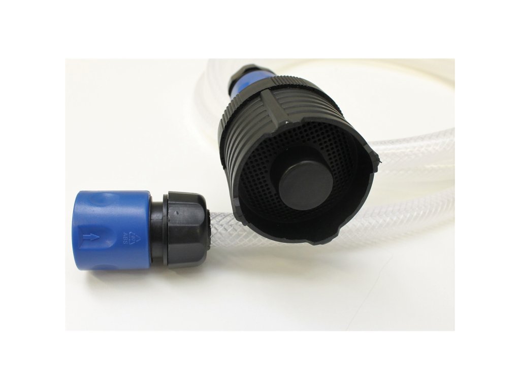 Sací hadice 3 m s filtrem pro tlakové myčky Sací hadice o délce 3 m s rychlospojkou a filtrem pro připojení k tlakovým myčkám se samonasávacím čerpadlem. Hadice se pomocí rychlospojky připevní ke vstupnímu přívodu vody do myčky a konec s filtrem se položí do vhodné nádoby (barel, sud, kbelík apod.) naplněné vodou. Myčka si sama nasává kapalinu bez nutnosti připojení na tlakovou vodu.Doplňkové parametry