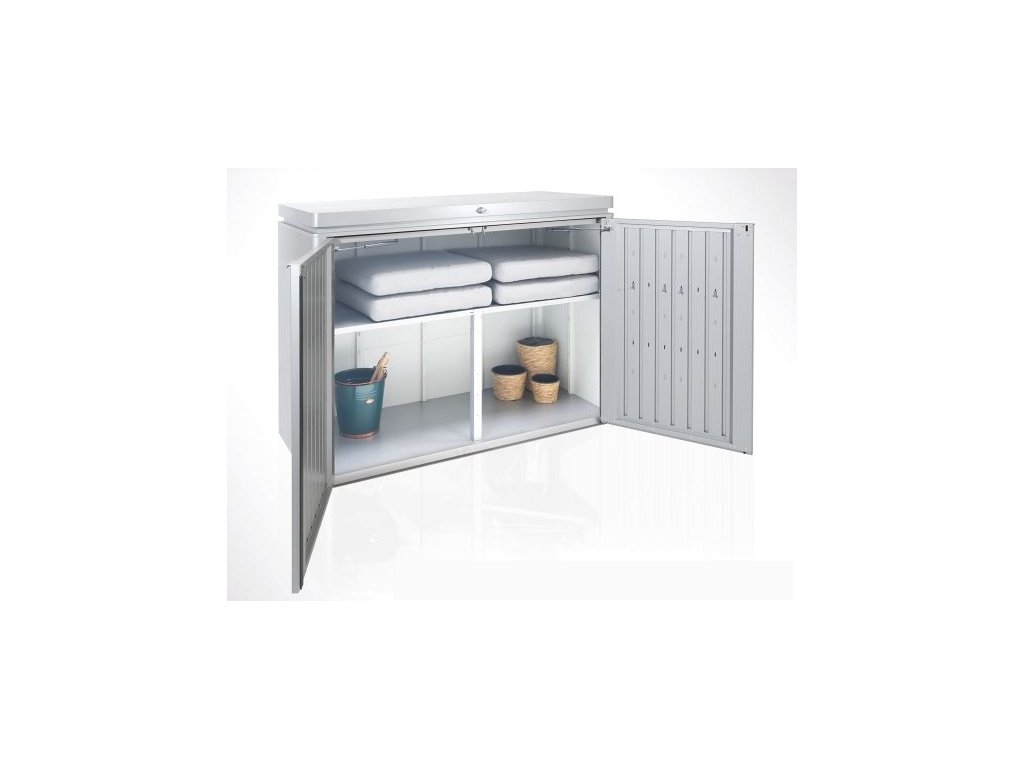 Může sloužit jako ocelová podlážka nebo jako regál do úložného boxu Biohort HighBoard 160