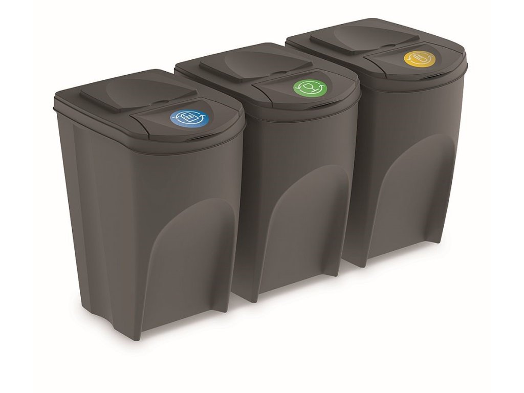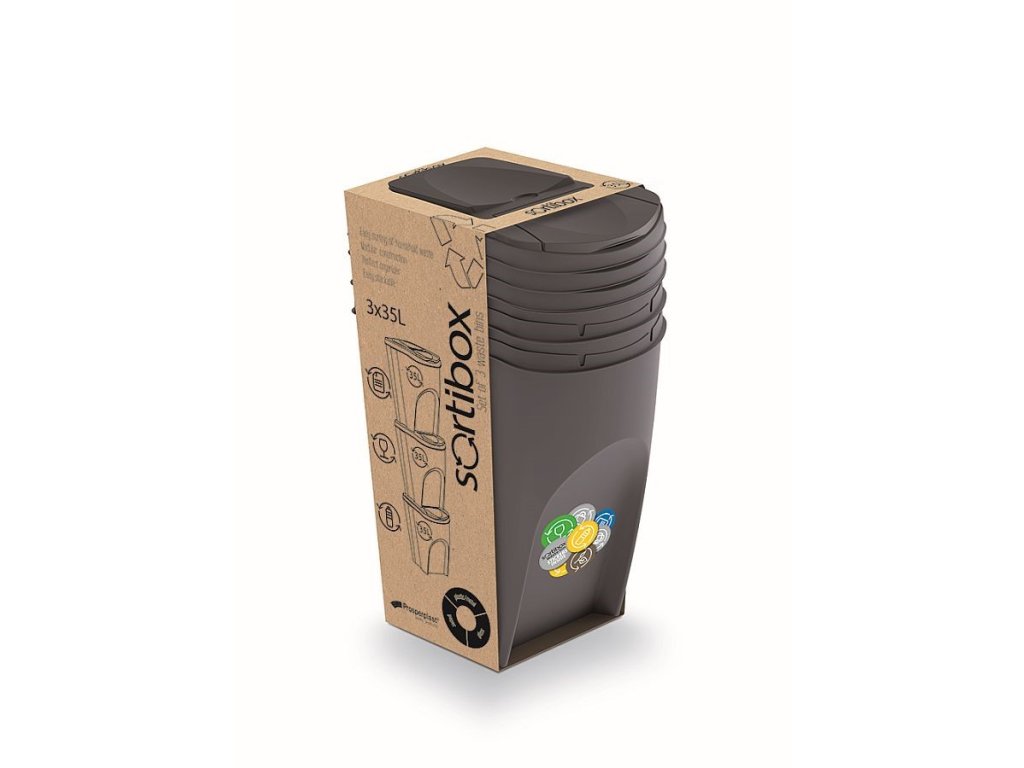 Sada 3 odpadkových košů SORTIBOX, šedý kámen, 3x35L