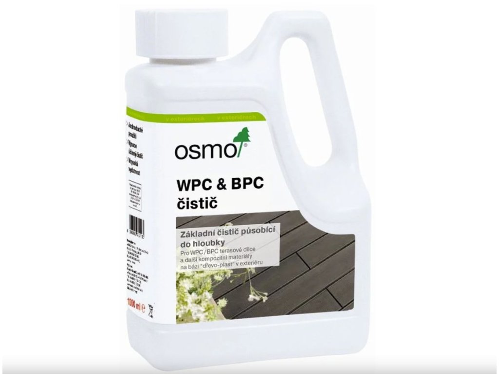 Osmo čistič WPC/BPC je vysoce účinný produkt navržený speciálně pro čištění a péči o dřevoplastický kompozitní materiál (WPC) a bambusový plastový kompozit (BPC). Tento čistič je vyvinut firmou Osmo, která je známá svými kvalitními řešeními pro povrchovou úpravu dřeva a podobných produktů. Osmo čistič je vodou ředitelný koncentrát, který je snadno použitelný a efektivní při odstravování nečistot, povětrnostního znečištění a jiných nežádoucích látek.