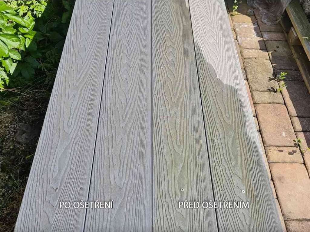 - Všestrannost: Čistič je vhodný pro venkovní terasy, nábytek, oplocení a jiné kompozitní materiály v exteriéru.