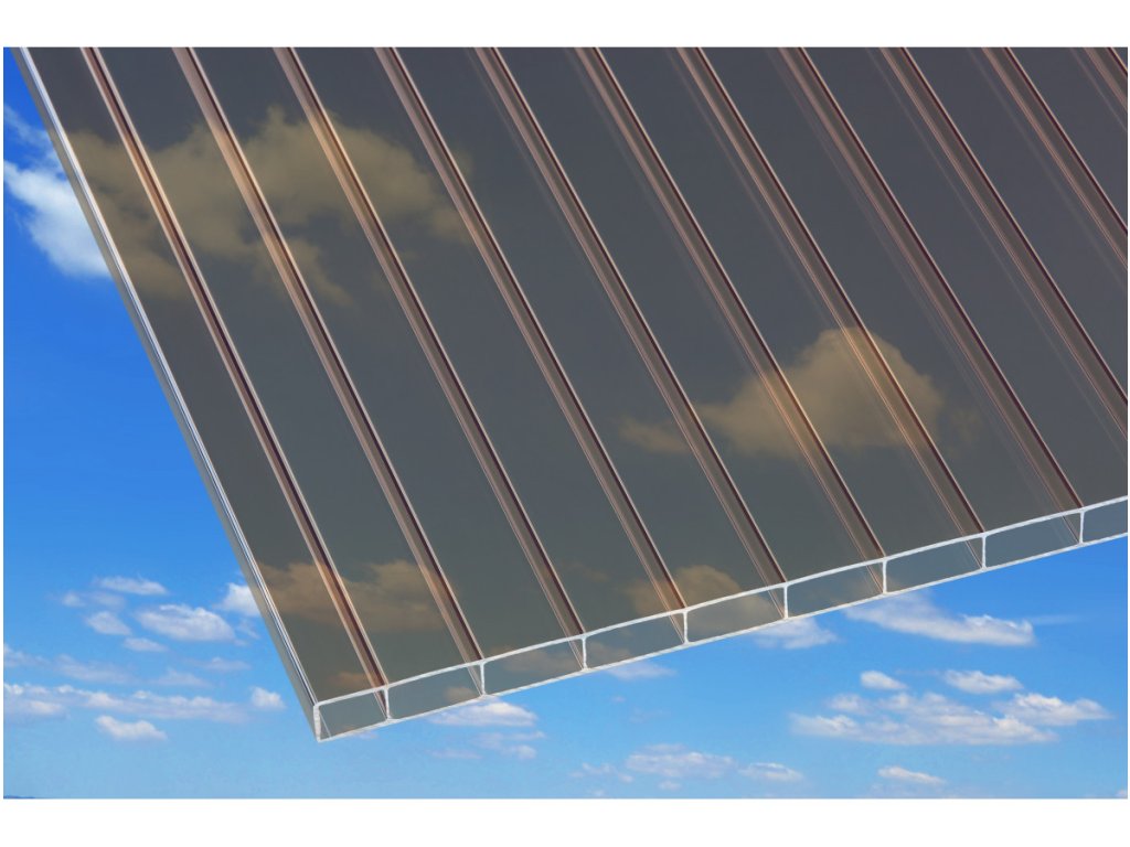 Zastřešení je řešeno kvalitními bronzovými akrylátovými deskami s dvojitými stěnami Guttagliss DUAL 16 mm, který v ČR prošel náročnými testy ve státem akreditovaných zkušebnách jako stavební materiál. Akrylát je opatřen jednostrannou UV ochranou. To vše zaručuje vysokou odolnost proti nepříznivému počasí. Odolá zatížení sněhem až do 150 kg / m2.