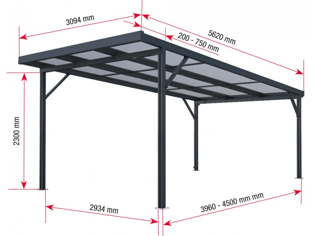 Schéma: Rozměry přístřešku na auto Gutta Carport Premium