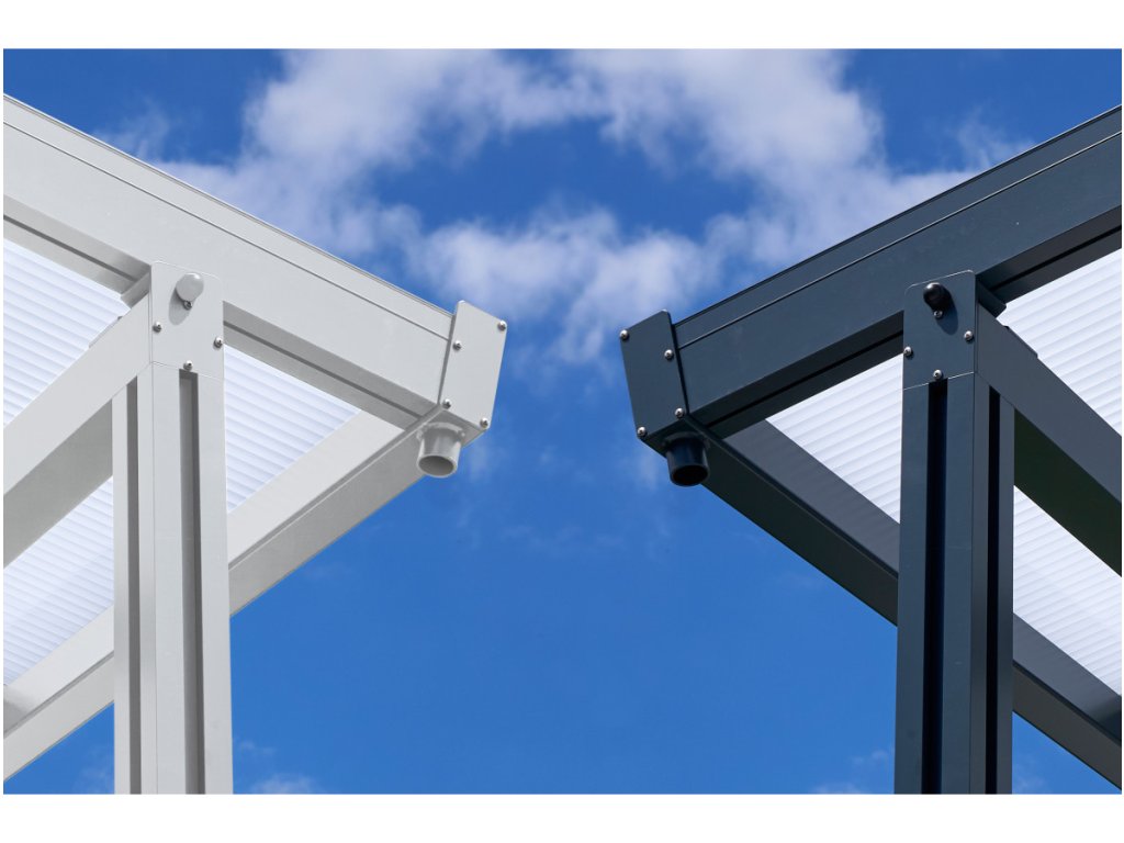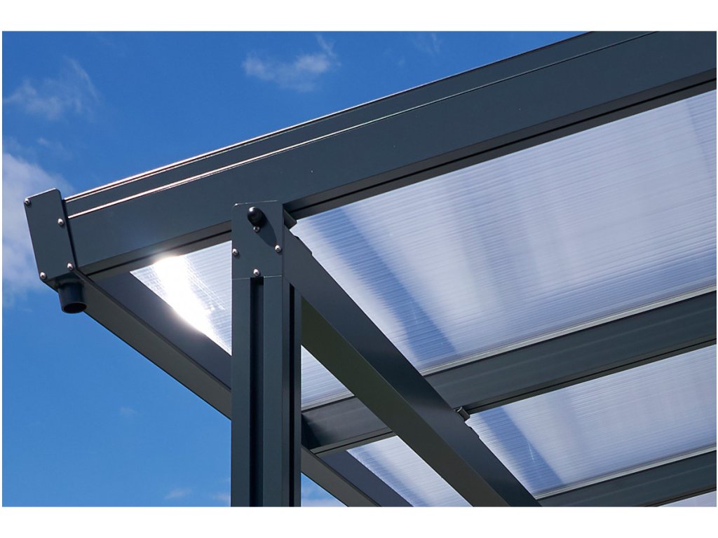 Robustní rámová konstrukce přístřešku je vyrobena z vysoce odolné hliníkové slitiny o síle profilů 2-4 mm. Je opatřena antikorozním nástřikem práškovým lakováním v antracitové barvě. Díky tomu je přístřešek vysoce odolný vůči rezavění, plísním a mechům a je v podstatě bezúdržbový. Podpěry a nožky jsou z 2 mm galvanizované oceli a jsou individuálně nastavitelné. Pro zvýšení ochrany vašeho auta lze ke Carport Premium PC dokoupit příslušenství, jako je boční či zadní stěna. V konstrukci carportu jsou připraveny profilové drážky, do kterých stačí stěny zasunout.