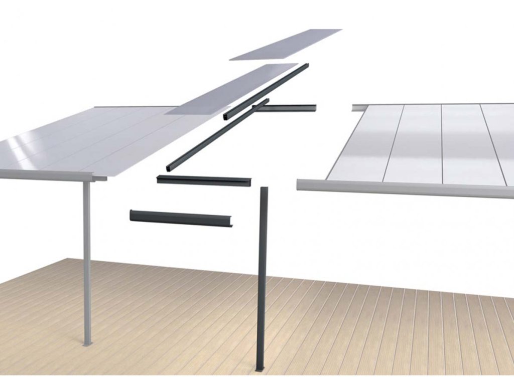 Originální příslušenství k německé hliníkové pergole Gutta Terrassendach original. Prodlouží pergolu o 1,2 m.