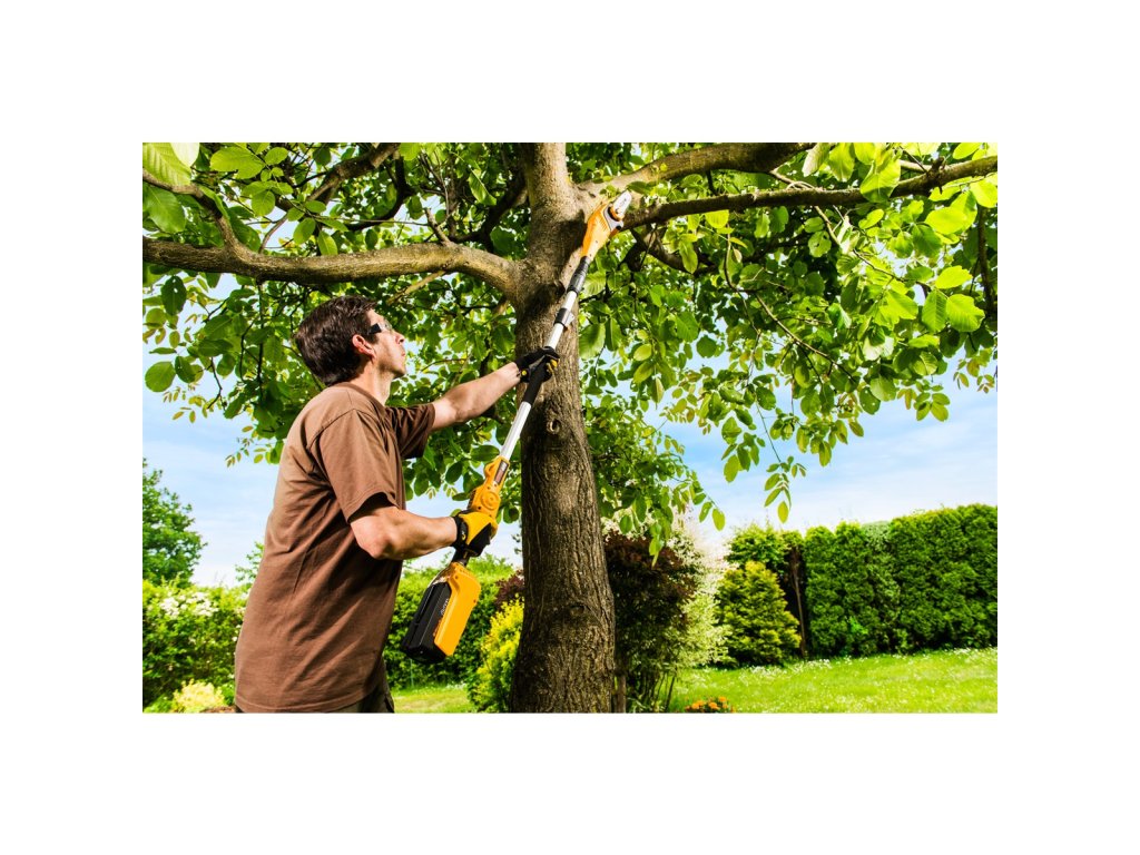 Prořezávací AKU řetězová pila RIWALL PRO RAPS 2040, 40 V je určená pro použití na zahradě nebo v sadech při prořezávání větví stromů a keřů. Teleskopickou rukojeť lze vysunout do výšky 205 - 260 cm. To vám umožní řezat bezpečně i vysoko položené větve bez nutnosti použít žebřík. Je vhodná zejména tam, kde není přístup k el. síti, nebo pokud nechcete manipulovat s napájecím kabelem.