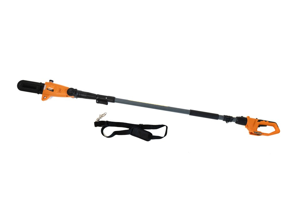 Výkonná AKU pila s teleskopickou rukojetí je vhodná na prořez větví stromů nebo kácení hustého porostu. Díky teleskopické rukojeti, dosáhnete i na větvě stromů ve výšce až pěti metrů. Pila je vhodná dokonce i na živé ploty a špatně přístupný porost.