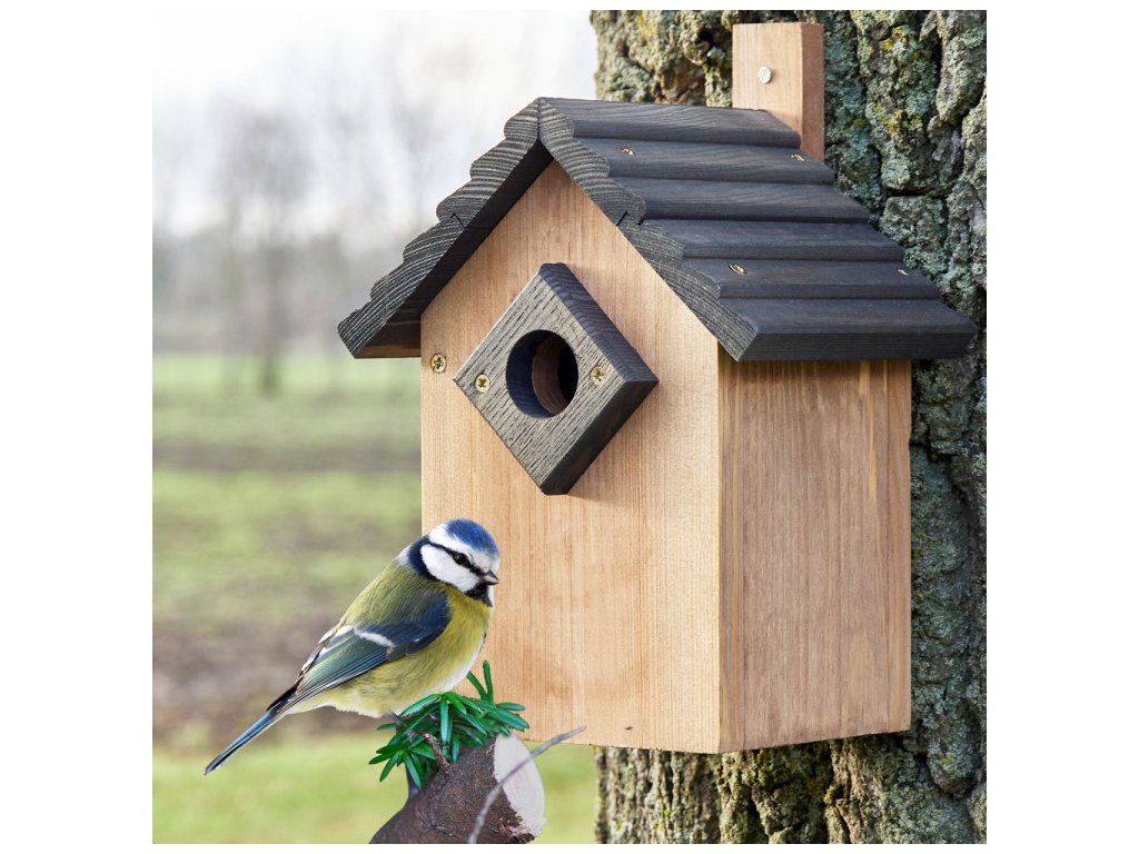 Díky předvrtanému otvoru pro zavěšení lze ptačí budku snadno zavěsit na vaši zahradu.