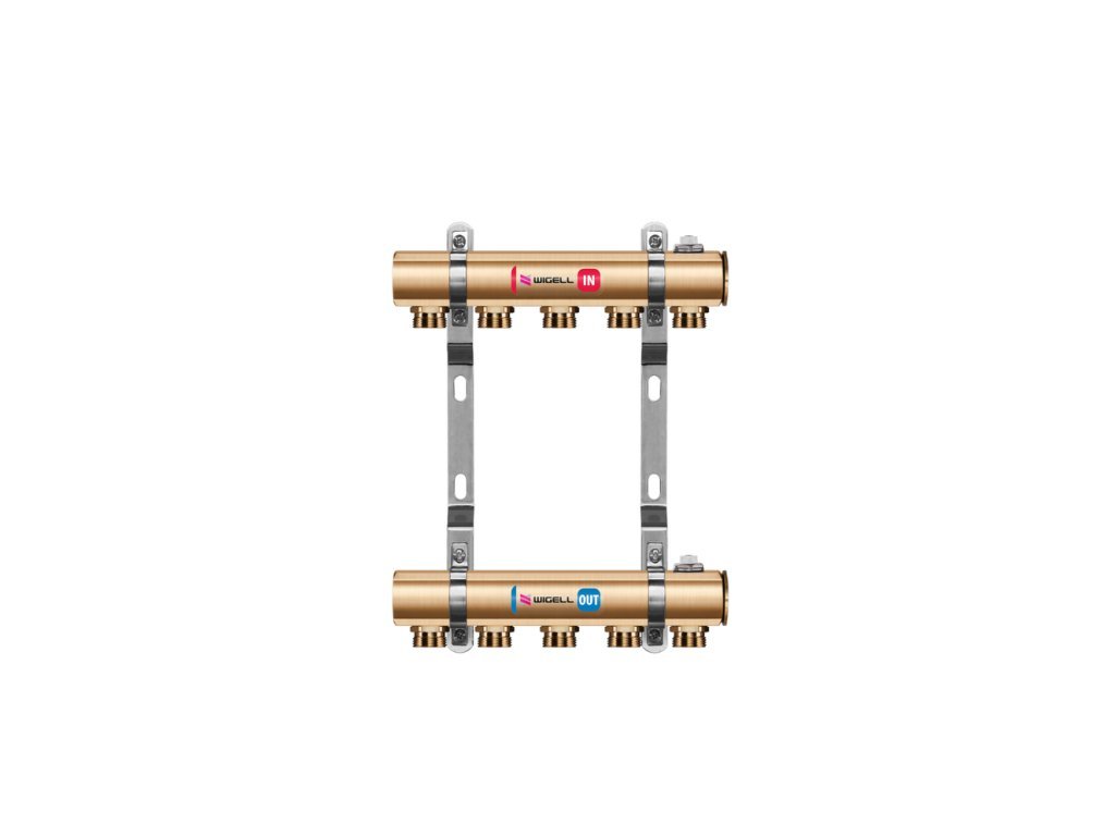 Rozdělovač radiátorový WIGELL, 4 okruhy, mosazný + vsuvky, odvzdušňování na klíč