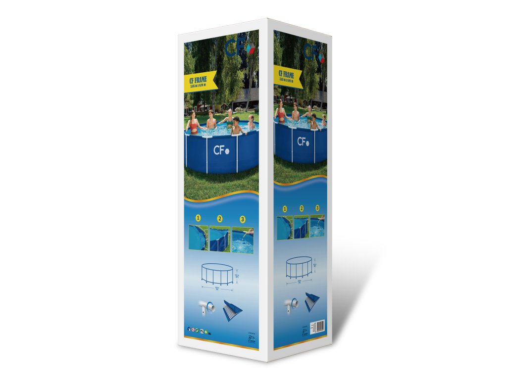 CF FRAME 305 × 91 cm je rámový nadzemní bazén určený pro zákazníky, kteří chtějí pevnější a stabilnější řešení než samonosné modely. Základem je kovová trubková konstrukce z oceli, která drží tvar bazénu i při plném napuštění. Zavěšená bazénová fólie je vyrobena z trojvrstvého PVC materiálu – kombinace dvou odolných vrstev a vnitřní výztužné síťoviny zajišťuje dlouhou životnost, vyšší odolnost proti protržení a stabilitu při zatížení. Výška 91 cm poskytuje větší objem vody (5,8 m³) a komfortnější koupání než nižší modely. Díky tomu je bazén vhodný nejen pro děti, ale i pro dospělé. Montáž je jednoduchá a nevyžaduje žádné nářadí. Konstrukce do sebe zapadá pomocí spojovacích prvků a bazén je připraven k napuštění během 15–20 minut. Důležité je pouze připravit rovný, pevný a zhutněný podklad. Bazén je vybaven průchodkami stěnou pro připojení filtrace (32/38 mm). Filtrace ani hadice nejsou součástí balení.Po sezóně lze bazén snadno demontovat, vysušit a uložit do suchého prostoru. Klíčové vlastnosti:Rámová ocelová konstrukce pro vysokou stabilitu Trojvrstvá zesílená PVC fólie Výška 91 cm – větší komfort při koupání Objem 5,8 m³ Montáž bez nářadí Připraven ke koupání cca za 15–20 minut Připojení filtrace 32/38 mm Vhodný pro sezónní použití5 vychytávek, které oceníte:Vyšší konstrukce 91 cm. Více vody znamená pohodlnější koupání i pro dospělé. Stabilní ocelový rám. Drží pevný tvar bez deformací při naplnění. 3vrstvá zesílená stěna. Odolnost proti protržení, UV záření i běžné bazénové chemii. Montáž bez nářadí. Jednoduchý systém spojů – žádné šroubování. Standardní připojení filtrace. Možnost napojení běžné kartušové nebo pískové filtrace.5 důvodů, proč zvolit CF FRAME:Vyšší stabilita než u samonosných bazénů Větší hloubka vody (91 cm) pro komfortnější koupání Zesílená fólie (0,52 mm stěna) pro delší životnost Snadná montáž bez speciálního nářadí Zázemí profesionálního bazénového prodejce se servisem a náhradními dílyTechnické parametry:ParametrHodnotaTyp bazénuRámový (trubková konstrukce)Průměr305 cmVýška91 cmObjem vody5,8 m³Materiál stěny3vrstvé PVCTloušťka stěny0,52 mmTloušťka dna0,28 mmBarvavnitřní modrá / vnější modráMontáž bez nářadíAnoPřipojení filtrace32 / 38 mmFiltrace součástíNeKrytNeŽebříkNePodložkaNeUrčeno pro zabudováníNeObsah balení:Konstrukce bazénu (ocelový rám) Bazénová fólie Průchodky stěnou Návod k montáži (Filtrace, hadice, plachta ani žebřík nejsou součástí balení.)Pro koho je bazén určen:Pro rodiny, které chtějí pevnější konstrukci než u nafukovacích bazénů Pro uživatele, kteří chtějí vyšší hladinu vody (91 cm) Pro sezónní využití bez stavebních úprav Pro zákazníky, kteří chtějí snadnou montáž bez složité instalaceModelTyp konstrukceRozměr (cm)Hloubka vodyObjem vodyProstor na zahraděIdeální proNáročnost montážeCF QUICK 305 × 76 (ratan)Samonosný (nafukovací prstenec)305 × 7676 cm4 m³MalýDěti, rychlé létoNejrychlejší (10 min)CF FRAME 305 × 76Rámový (ocelová konstrukce)305 × 7676 cm4,8 m³MalýRodina s malými dětmi15–20 minCF FRAME 305 × 91Rámový305 × 9191 cm5,8 m³Malý až středníRodina15–20 minCF FRAME 305 × 107Rámový305 × 107107 cm6,7 m³StředníDěti + dospělí15–20 minCF FRAME 366 × 132 (ratan)Rámový366 × 132132 cm13,8 m³Větší zahradaRodina, částečné plavání20 minCF FRAME 457 × 132 (ratan)Rámový – vrcholný model457 × 132132 cm21 m³Velká zahradaVelká rodina20 min Závěrečné shrnutí: CF FRAME 305 × 91 cm je stabilní, odolný a přitom snadno instalovatelný nadzemní bazén pro celou rodinu. Díky pevné ocelové konstrukci a zesílené PVC fólii nabízí vyšší jistotu a delší životnost než základní modely. Při nákupu od specializovaného bazénáře získáváte:dostupné náhradní díly servisní podporu odborné poradenství kompatibilní příslušenstvíBazén je sezónní investice na několik let – vyplatí se zvolit kvalitu a zázemí, které vám bude k dispozici i po nákupu.Doplňkové parametry