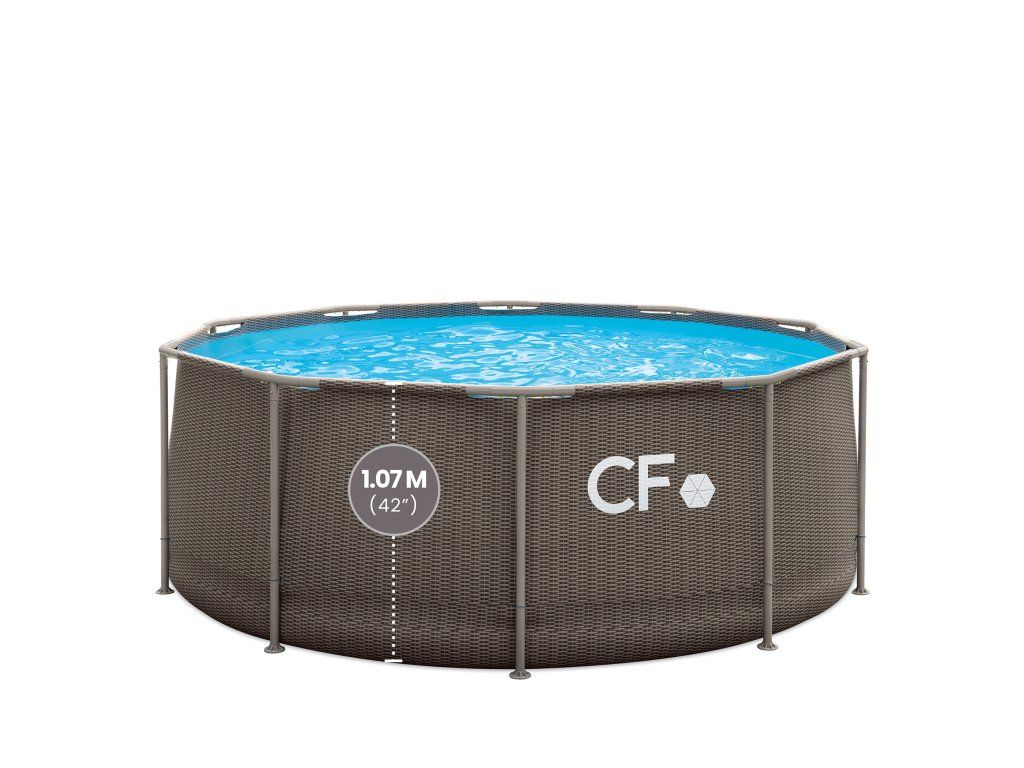 Bazén CF FRAME 305 × 107 cm je navržen pro zákazníky, kteří chtějí víc než jen základní nadzemní bazén. Hlavní výhodou tohoto modelu je jeho hloubka 107 cm, která je na trhu výjimečná a umožňuje skutečně plnohodnotné koupání i pro dospělé. Pevná trubková konstrukce z oceli zajišťuje stabilitu i při plném napuštění 6,7 m³ vody. Zavěšená bazénová fólie je vyrobena z trojvrstvého PVC materiálu s výztužnou síťovinou, která zvyšuje odolnost proti protržení, mechanickému namáhání i UV záření. Díky vyšší konstrukci je bazén vhodný nejen pro děti, ale i pro dospělé, kteří si chtějí zaplavat nebo se pohodlně osvěžit bez pocitu „mělké vody“. To je zásadní rozdíl oproti běžným modelům s výškou 76 nebo 91 cm. Montáž je rychlá a nevyžaduje žádné nářadí. Při správně připraveném rovném podkladu je bazén připraven k napuštění během 15–20 minut. Bazén je vybaven průchodkami stěnou pro připojení filtrace (32/38 mm). Filtrace ani hadice nejsou součástí balení. Po sezóně lze bazén snadno demontovat, vysušit a uložit do suchého prostoru. Klíčové vlastnosti:Rámová ocelová konstrukce pro vysokou stabilitu Nadstandardní výška 107 cm Trojvrstvá zesílená PVC fólie Objem vody 6,7 m³ Montáž bez nářadí Připraven k napuštění během 15–20 minut Připojení filtrace 32/38 mm Vhodný pro sezónní použití5 vychytávek, které oceníte:Výška 107 cm – skutečný rozdíl v komfortu. Hlubší voda znamená pohodlnější koupání i pro dospělé. Stabilní ocelový rám. Drží pevný tvar i při maximálním naplnění. 3vrstvá zesílená stěna (0,52 mm). Vyšší odolnost proti protržení a UV záření. Montáž bez nářadí. Jednoduchý systém spojů – žádné šroubování. Standardní napojení filtrace. Kompatibilní s běžnými kartušovými i pískovými filtracemi.5 důvodů, proč zvolit právě tento model:Výjimečná hloubka 107 cm – vyšší než většina běžných modelů. Větší objem vody (6,7 m³) – komfort pro celou rodinu. Stabilní rámová konstrukce – bezpečnější než samonosné bazény. Zesílená fólie 0,52 mm – delší životnost. Podpora specializovaného bazénového prodejce se servisem a náhradními díly.Technické parametry:ParametrHodnotaTyp bazénuRámový (trubková konstrukce)Průměr305 cmVýška107 cmObjem vody6,7 m³Materiál stěny3vrstvé PVCTloušťka stěny0,52 mmTloušťka dna0,28 mmBarvavnitřní modrá / vnější ratanMontáž bez nářadíAnoPřipojení filtrace32 / 38 mmFiltrace součástíNeUrčeno pro zabudováníNe Obsah balení:Konstrukce bazénu (ocelový rám) Bazénová fólie Průchodky stěnou Návod k montáži (Filtrace, hadice, plachta ani žebřík nejsou součástí balení.)Pro koho je bazén určen:Pro rodiny, které chtějí hlubší a stabilnější bazén Pro zákazníky, kterým nestačí běžná výška 76 nebo 91 cm Pro sezónní využití bez stavebních úprav Pro uživatele, kteří chtějí rychlou montáž bez složité instalacePřehled bazénů CF – rychlý výběr podle velikosti, hloubky a komfortuModelTyp konstrukceRozměr (cm)Hloubka vodyObjem vodyProstor na zahraděIdeální proNáročnost montážeCF QUICK 305 × 76 (ratan)Samonosný (nafukovací prstenec)305 × 7676 cm4 m³MalýDěti, rychlé létoNejrychlejší (10 min)CF FRAME 305 × 76Rámový (ocelová konstrukce)305 × 7676 cm4,8 m³MalýRodina s malými dětmi15–20 minCF FRAME 305 × 91Rámový305 × 9191 cm5,8 m³Malý až středníRodina15–20 minCF FRAME 305 × 107Rámový305 × 107107 cm6,7 m³StředníDěti + dospělí15–20 minCF FRAME 366 × 132 (ratan)Rámový366 × 132132 cm13,8 m³Větší zahradaRodina, částečné plavání20 minCF FRAME 457 × 132 (ratan)Rámový – vrcholný model457 × 132132 cm21 m³Velká zahradaVelká rodina20 min Závěrečné shrnutí: CF FRAME 305 × 107 cm je nadzemní bazén, který přináší nadstandardní hloubku vody a výrazně vyšší komfort koupání. Díky pevné ocelové konstrukci a zesílené PVC fólii nabízí stabilitu, bezpečnost a dlouhou životnost. Při nákupu od specializovaného bazénáře získáváte:dostupné náhradní díly servisní podporu odborné poradenství kompatibilní příslušenství Pokud hledáte hlubší rámový bazén pro skutečné koupání, tento model patří mezi nejzajímavější volby ve své kategorii.Doplňkové parametry