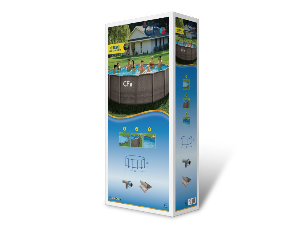 Pokud hledáte skutečně velký a hluboký nadzemní bazén, model CF FRAME 457 × 132 cm představuje absolutní vrchol v kategorii rámových bazénů. Hloubka 132 cm je zásadní rozdíl oproti běžným modelům s výškou 76, 91 nebo 107 cm. Umožňuje pohodlné ponoření, lepší plavecký pohyb a výrazně vyšší komfort pro dospělé. Díky průměru 457 cm a objemu 21 m³ získáváte prostor, kde se může současně koupat více osob bez pocitu stísněnosti. Rám tvoří pevná ocelová konstrukce s povrchovou úpravou, která zajišťuje stabilitu i při plném napuštění. Zavěšená bazénová fólie je vyrobena ze tří vrstev PVC s výztužnou síťovinou. Tloušťka stěny 0,56 mm a dna 0,35 mm poskytuje vyšší odolnost proti mechanickému poškození i běžnému opotřebení. Ratanový dekor dodává bazénu elegantní vzhled a umožňuje, aby zapadl do moderní zahrady bez dojmu „dočasného sezónního řešení“. Montáž probíhá bez použití nářadí a při připraveném rovném podkladu je bazén připraven k napuštění během 15–20 minut. Bazén je vybaven průchodkami stěnou pro připojení filtrace (filtrace není součástí balení). Model není určen pro zapuštění do země – jedná se o sezónní nadzemní řešení.Bazén umožňuje připojení filtrace (filtrace ani hadice nejsou součástí balení).Tento typ bazénu není určen pro zabudování do země. Klíčové vlastnosti produktu:Rámový nadzemní bazén s kovovou konstrukcí Nadstandardní hloubka 132 cm Velkorysý průměr 457 cm Objem vody 21 m³ Trojvrstvá zesílená PVC fólie Stabilní ocelový rám Montáž bez nářadí Ratanový dekor Příprava pro připojení filtrace5 vychytávek, které oceníte:Hloubka 132 cm – skutečné koupání. Plnohodnotný zážitek i pro dospělé, nejen dětské cákání. Objem 21 m³. Dostatek prostoru pro rodinu i návštěvy. Zesílené stěny 0,56 mm. Vyšší odolnost proti protržení než u základních modelů. Stabilní ocelový rám. Pevnost i při plném zatížení vody. Prémiový ratanový vzhled. Estetické řešení, které pozvedne vzhled zahrady.5 důvodů, proč je tento model lepší než běžné alternativy:Výrazně větší hloubka (132 cm) než většina dostupných modelů. Jeden z největších objemů vody v kategorii rámových bazénů. Silnější fólie než u základních sezónních bazénů. Stabilnější konstrukce – vyšší bezpečnost při používání. Prodej přes specializovaného bazénáře – servis, náhradní díly, odborná podpora.Technické parametry:Typ bazénu: rámový Barva: modrý vnitřek / ratan zvnějšku Materiál: trojvrstvé PVC Výška: 132 cm Průměr: 457 cm Kapacita: 21 m³ Montáž bez nářadí: Ano Filtrační čerpadlo v ceně: Ne Včetně krytu: Ne Včetně žebříku: Ne Včetně podložky: Ne Tloušťka stěny: 0,60 mm Tloušťka dna: 0,41 mmObsah balení:Ocelová konstrukce bazénu Trojvrstvá PVC fólie Průchodky stěnouJe ideální pro:Rodiny, které chtějí skutečný plavecký prostor Zákazníky hledající maximální hloubku Ty, kteří chtějí prémiový vzhled zahrady Uživatelé požadující stabilitu a dlouhou životnostPřehled bazénů CF – rychlý výběr podle velikosti, hloubky a komfortuModelTyp konstrukceRozměr (cm)Hloubka vodyObjem vodyProstor na zahraděIdeální proNáročnost montážeCF QUICK 305 × 76 (ratan)Samonosný (nafukovací prstenec)305 × 7676 cm4 m³MalýDěti, rychlé létoNejrychlejší (10 min)CF FRAME 305 × 76Rámový (ocelová konstrukce)305 × 7676 cm4,8 m³MalýRodina s malými dětmi15–20 minCF FRAME 305 × 91Rámový305 × 9191 cm5,8 m³Malý až středníRodina15–20 minCF FRAME 305 × 107Rámový305 × 107107 cm6,7 m³StředníDěti + dospělí15–20 minCF FRAME 366 × 132 (ratan)Rámový366 × 132132 cm13,8 m³Větší zahradaRodina, částečné plavání20 minCF FRAME 457 × 132 (ratan)Rámový – vrcholný model457 × 132132 cm21 m³Velká zahradaVelká rodina20 minZávěrečné shrnutí: Bazén CF FRAME 457 × 132 cm je největší a nejhlubší model v nabídce rámových nadzemních bazénů. Nabízí komfort, který se blíží zapuštěným bazénům, ale bez stavebních zásahů a vysokých nákladů. Nákupem u specializovaného bazénáře získáváte:servisní zázemí dostupné náhradní díly odborné poradenství kompatibilní příslušenství Pokud chcete největší rámový bazén bez kompromisů, tento model představuje absolutní špičku ve své kategorii.Doplňkové parametry