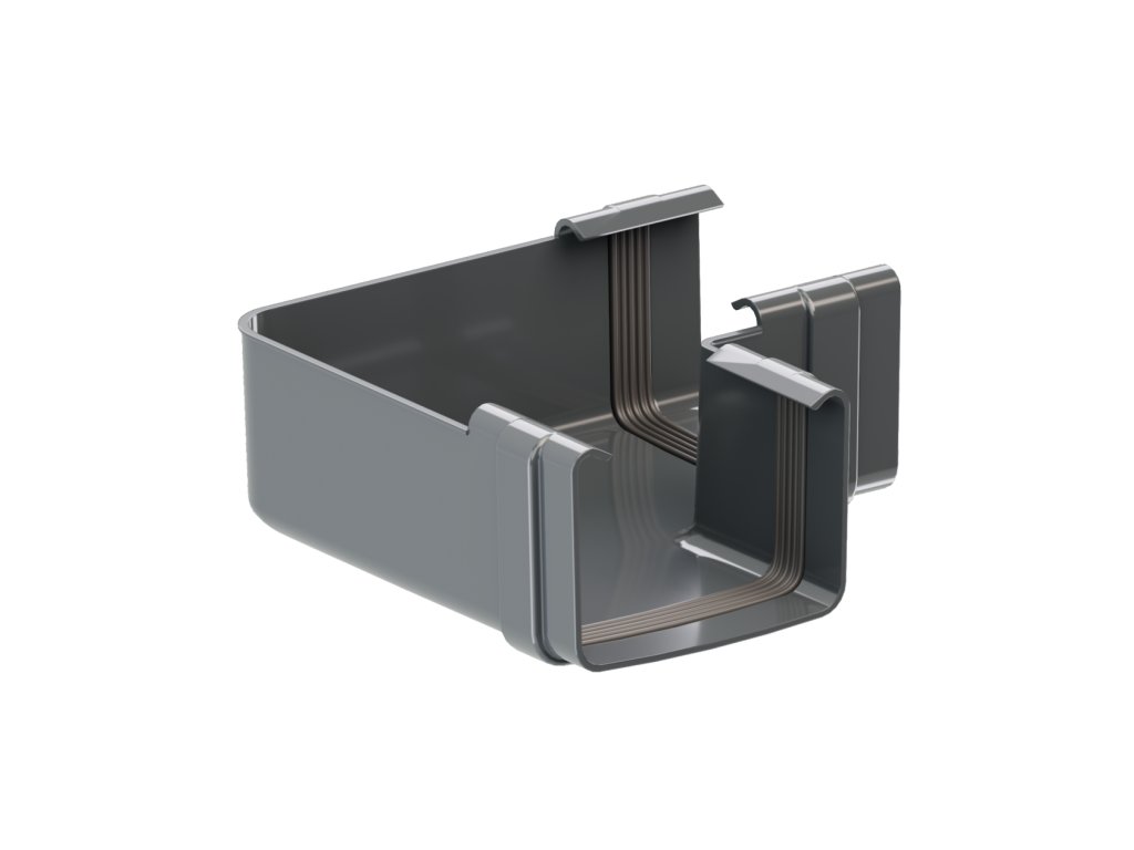 GuttaKROP roh (univerzální) - GuttaKROP roh (univerzální) umožňuje spojit dva GuttaKROP hranaté žlaby umístěné pod úhlem 90 stupňů. Materiál je koextrudovaný PVC s vrchní vrstvou z polymetakrylátu (PMMA), který zaručuje barvostálost a dlouhou životnost.
