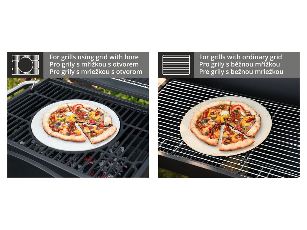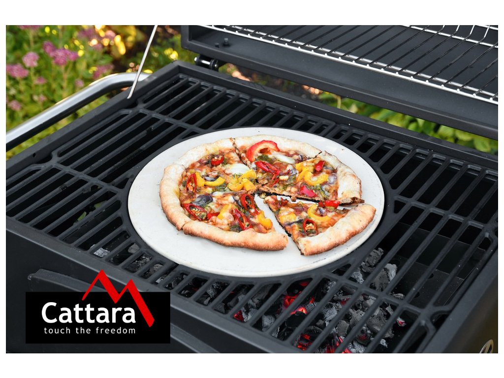 Grilovací kulatý plát na pečení především pizzy ale i chleba, či různých koláčů. Kámen rovnoměrně udržuje stálou teplotu a je tak ideální pro pečení pokrmů. Kámen je vhodný pro grily s mřížkou s otvorem 31 cm, jako je Cattara gril 13043 a 13040, ale i pro grily s běžnou mřížkou bez středového otvoru.