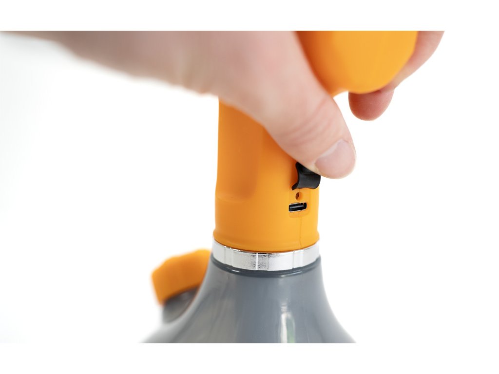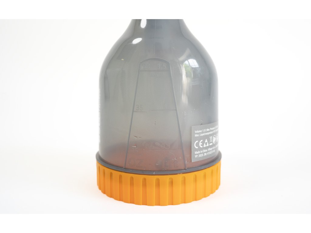 Tlakový postřikovač pracuje s maximálním tlakem 1,4 bary. Kontrolu hladiny 1,5 litrové nádrže vidíte na boční měrce. Velkou výhodou postřikovače je nízká hmotnost 0,4 kg.