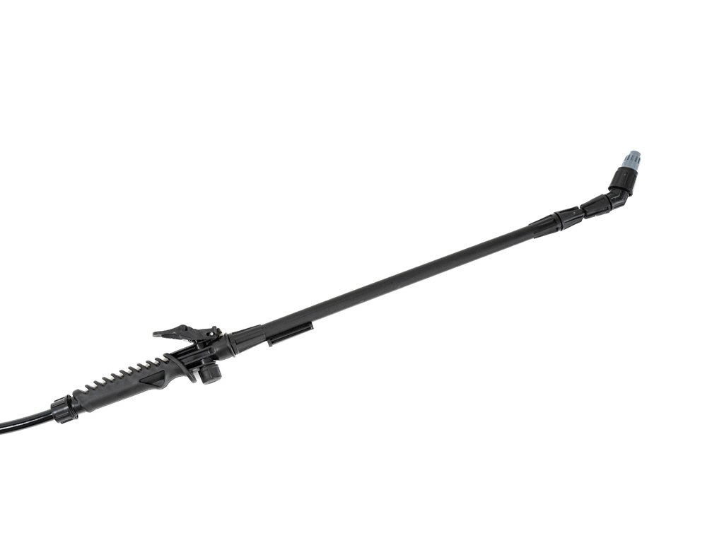 tryska pro aplikaci je individuálně nastavitelná, teleskopický nástavec lze prodloužit z 60 cm na 120 cm a vzdálenost dostřiku je tak až 3 m. Velkou výhodou postřikovače je nízká hmotnost 1,25 kg.