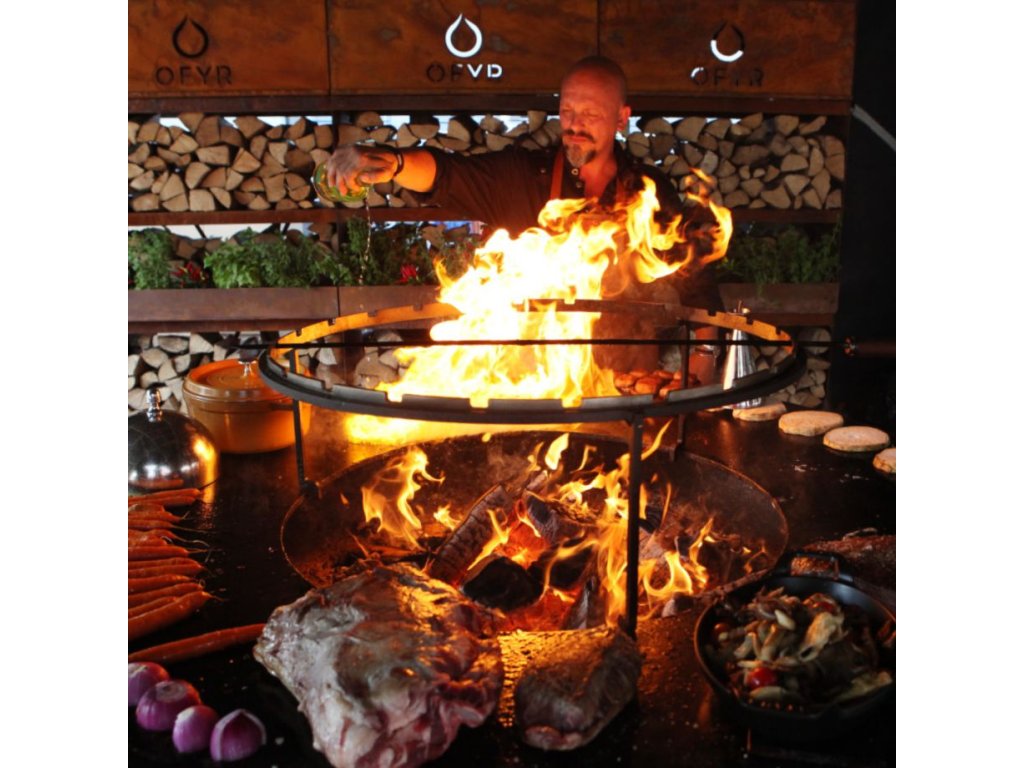 Do této sady tří ocelových špízů na speciálně navrženém stojánku se fanoušci grilování zamilují. Vyvýšený stojan s vroubkovaným kruhem je umístěn nad ohništěm OFYR a má přesně stanovenou výšku pro dokonalou přípravu masa i zeleniny.