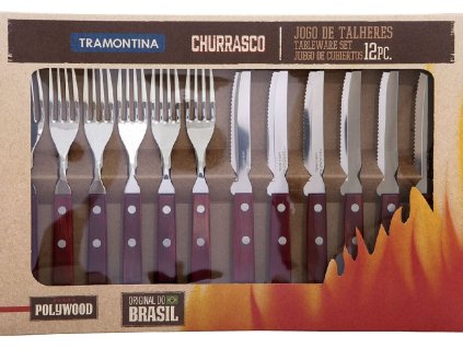Vidlice v hnědé barvě z nerezové oceli s dřevěnou rukojetí.