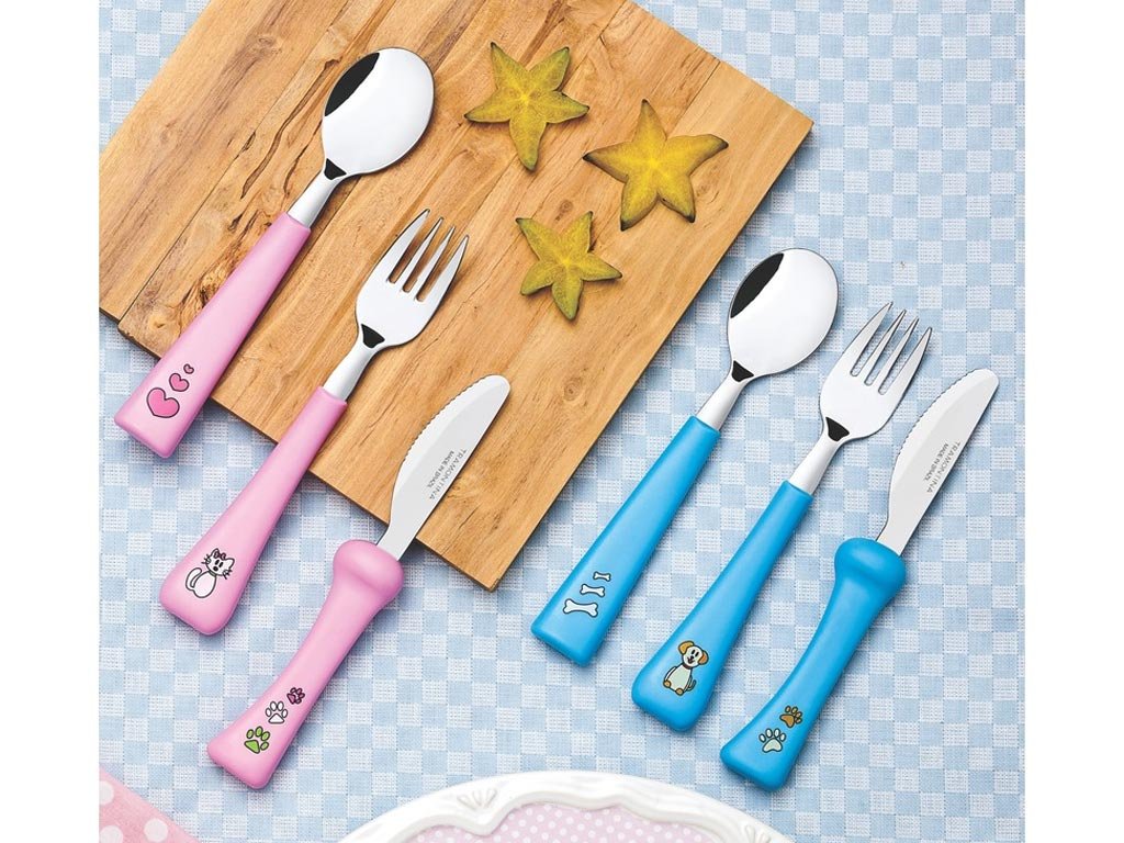 Dětský příbor v modré barvě vhodný pro děti od 1 roku. Příbor je vhodný do myčky nádobí.