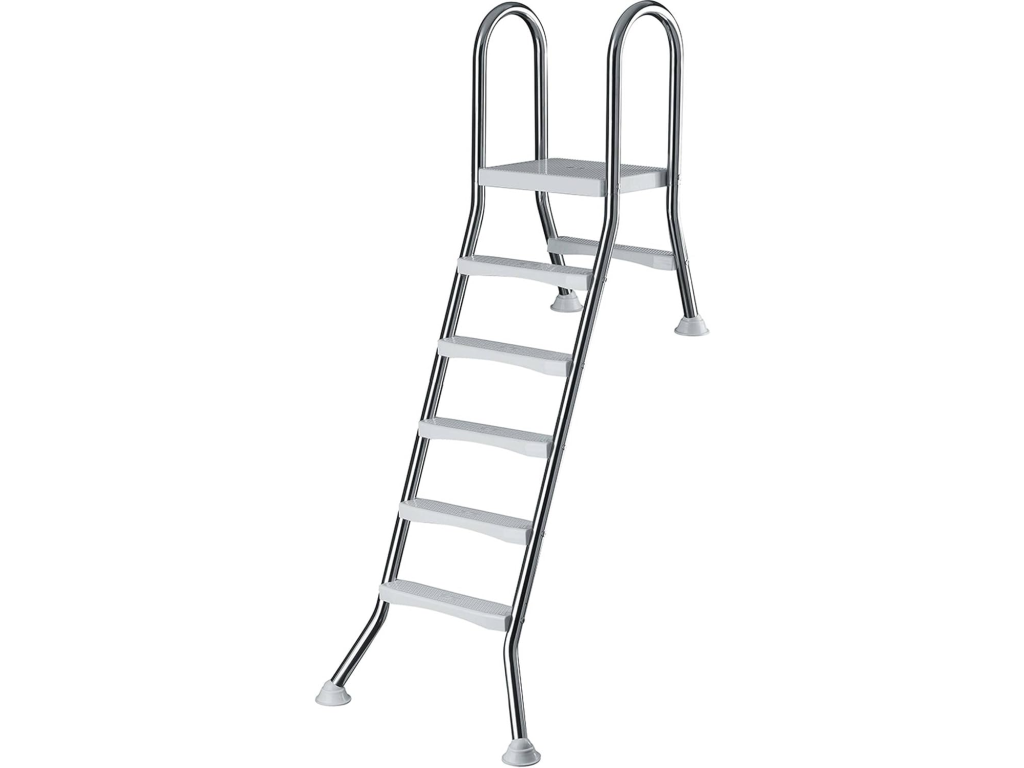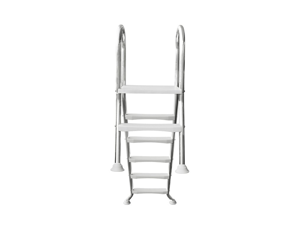 Bazénové schůdky NEOVA 150 cm - nerezová ocel Naše bazénové schůdky NEOVA 150 cm jsou ideální volbou pro částečně zapuštěné bazény s hloubkou vody 150 cm. Tyto schůdky jsou vyrobeny z kvalitní nerezové oceli AISI304 a zaručují dlouhou životnost a odolnost proti korozi. Díky protiskluzovým schodnicím a pevným nohám jsou schůdky bezpečné a stabilní i při vyšším zatížení. Hlavní vlastnosti:Materiál: Vysoce kvalitní nerezová ocel AISI304 pro maximální odolnost vůči korozi. Protiskluzové schodnice: Schůdky jsou vybaveny protiskluzovými schodnicemi, které zajišťují bezpečný vstup i výstup z bazénu. Stabilita: Schůdky mají 1 schod na vnější straně a 5 schodů na vnitřní straně bazénu, což usnadňuje pohodlný a bezpečný přístup. Kapacita: Schůdky jsou navrženy pro nosnost až 150 kg, což je zajištěno stabilní konstrukcí a pevným plastovým stupněm. Vhodné pro částečně zapuštěné bazény: Schůdky jsou ideální pro bazény s hloubkou vody 150 cm.Technické parametry:Materiál: Nerezová ocel AISI304 Počet schodů: 5 schodů na vnitřní straně a 1 schod na vnější straně bazénu Protiskluzové schodnice Maximální nosnost: 150 kg Vhodné pro bazény s hloubkou vody 150 cmStabilní podložky z gumy na nožkách, které chrání bazénovou fólii před poškozenímPoznámka: Schůdky NEOVA 150 cm jsou určeny pro sladkou vodu. Při použití ve slané vodě nebo u bazénů s elektrolytickým solným systémem je možné, že dojde k degradaci materiálu v důsledku chloridové koroze nebo rezivění.Doplňkové parametry