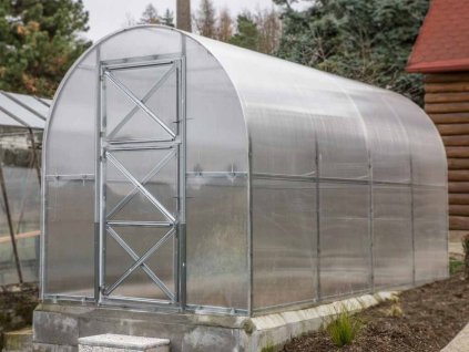 Netradiční design a kvalitně propracovaná konstrukce - to jsou ruské skleníky Strelka. Díky soustavě bočních a střešních vzpěr odolá i zatížení 450 kg na m2. Výborně se tak hodí do větrného prostředí. Skleník kryje 4 mm polykarbonát s UV ochranou.